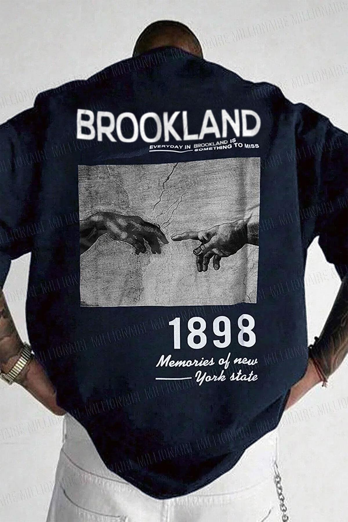 Erkek 1898 Baskılı Lacivert Oversize Salas T-Shirt (E2216)
