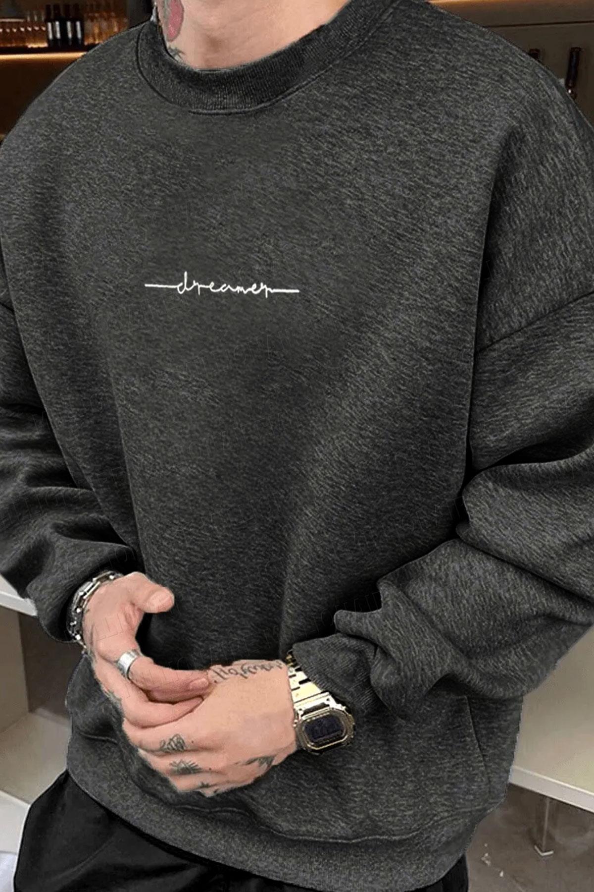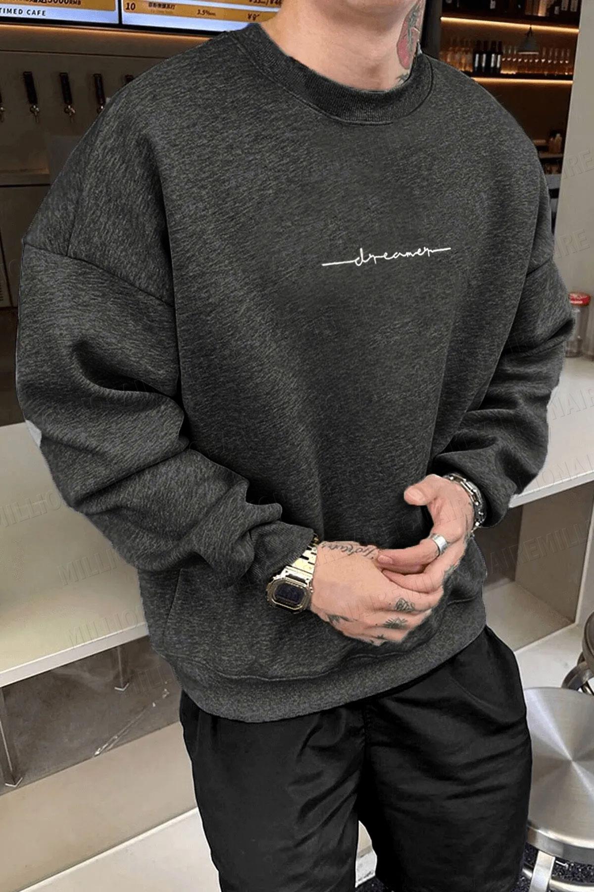 Erkek Antrasit Dreamer Baskılı 0 Sıfır Yaka Oversize Salaş Bol Kesim Polar Sweatshirt (E6004)