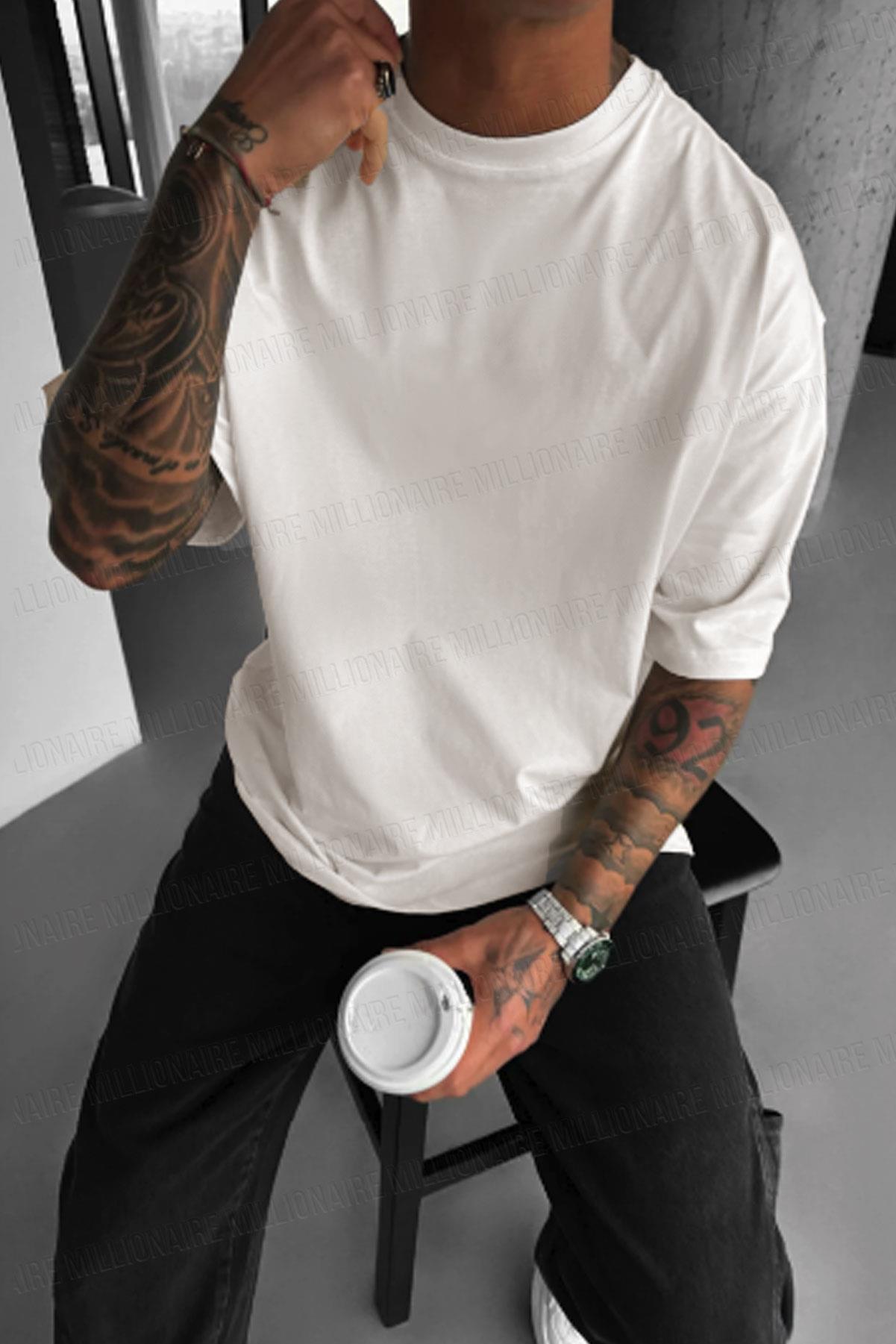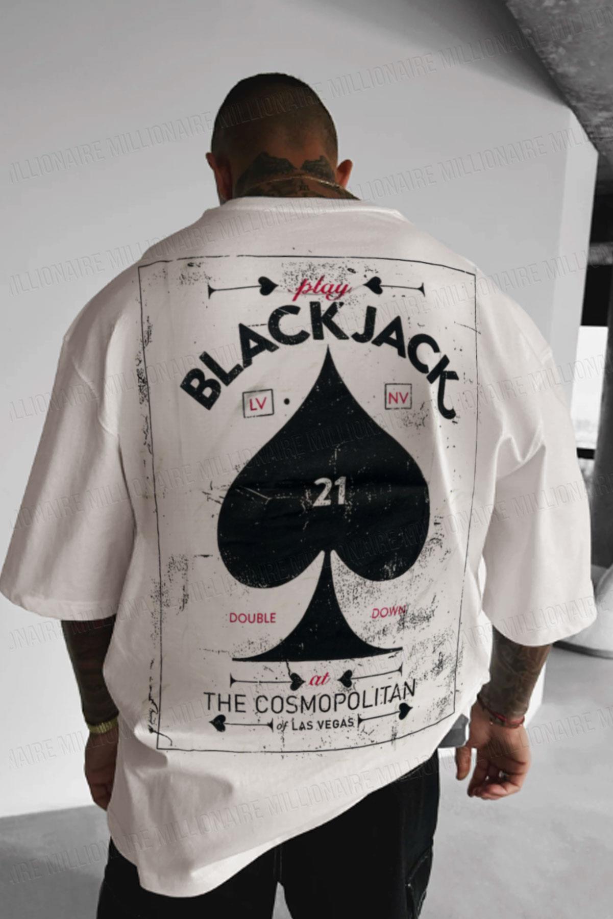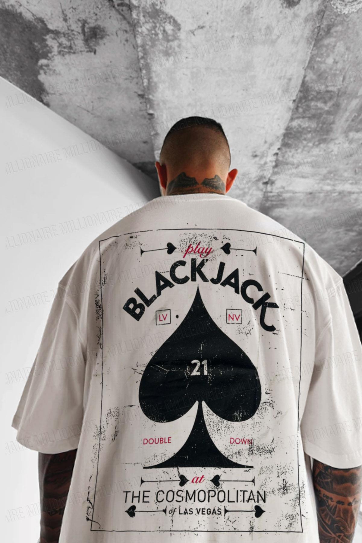 Erkek Beyaz Black Jack Oversize Fit Bol Geniş Kalıp Salaş Kesim T-shirt (E2300)