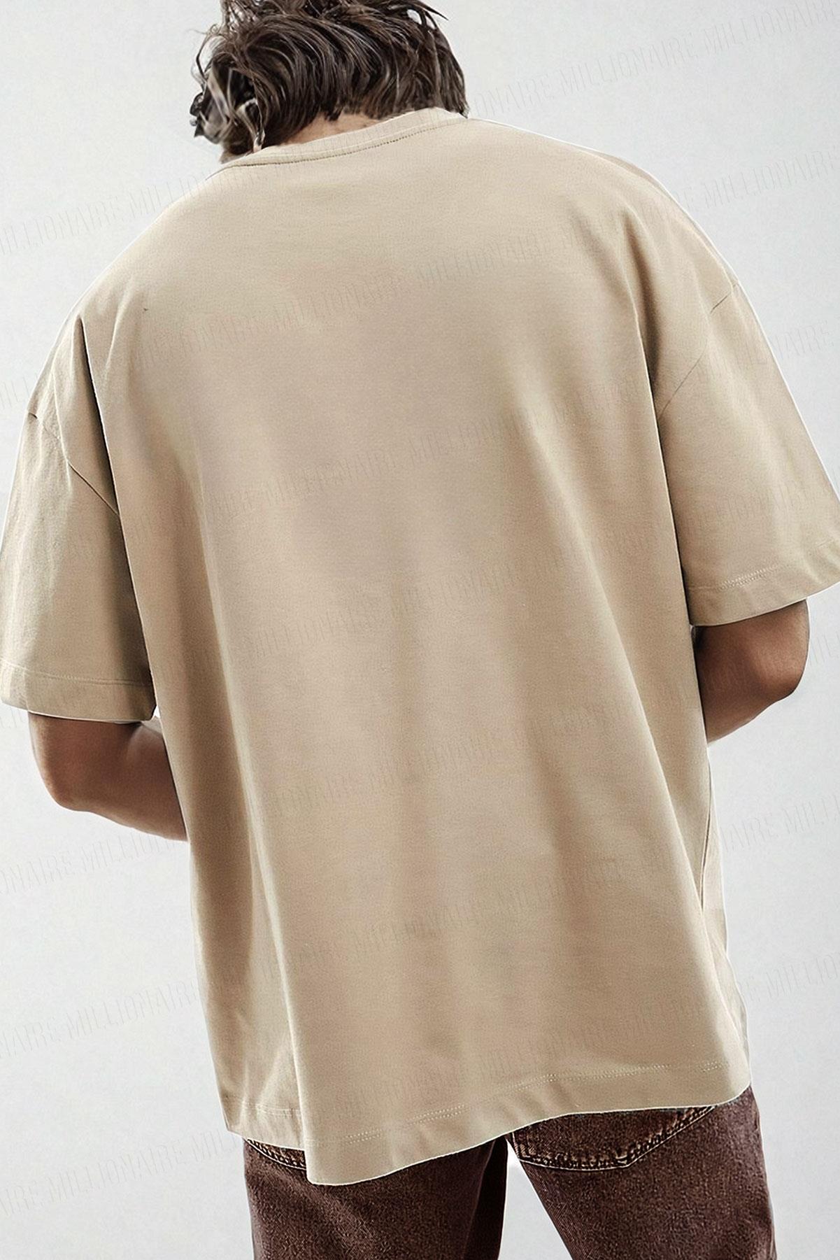 Erkek Camel Sütlü Kahve Basic Düz Baskısız Oversize Salas Boyfriend T-Shirt (E2211)