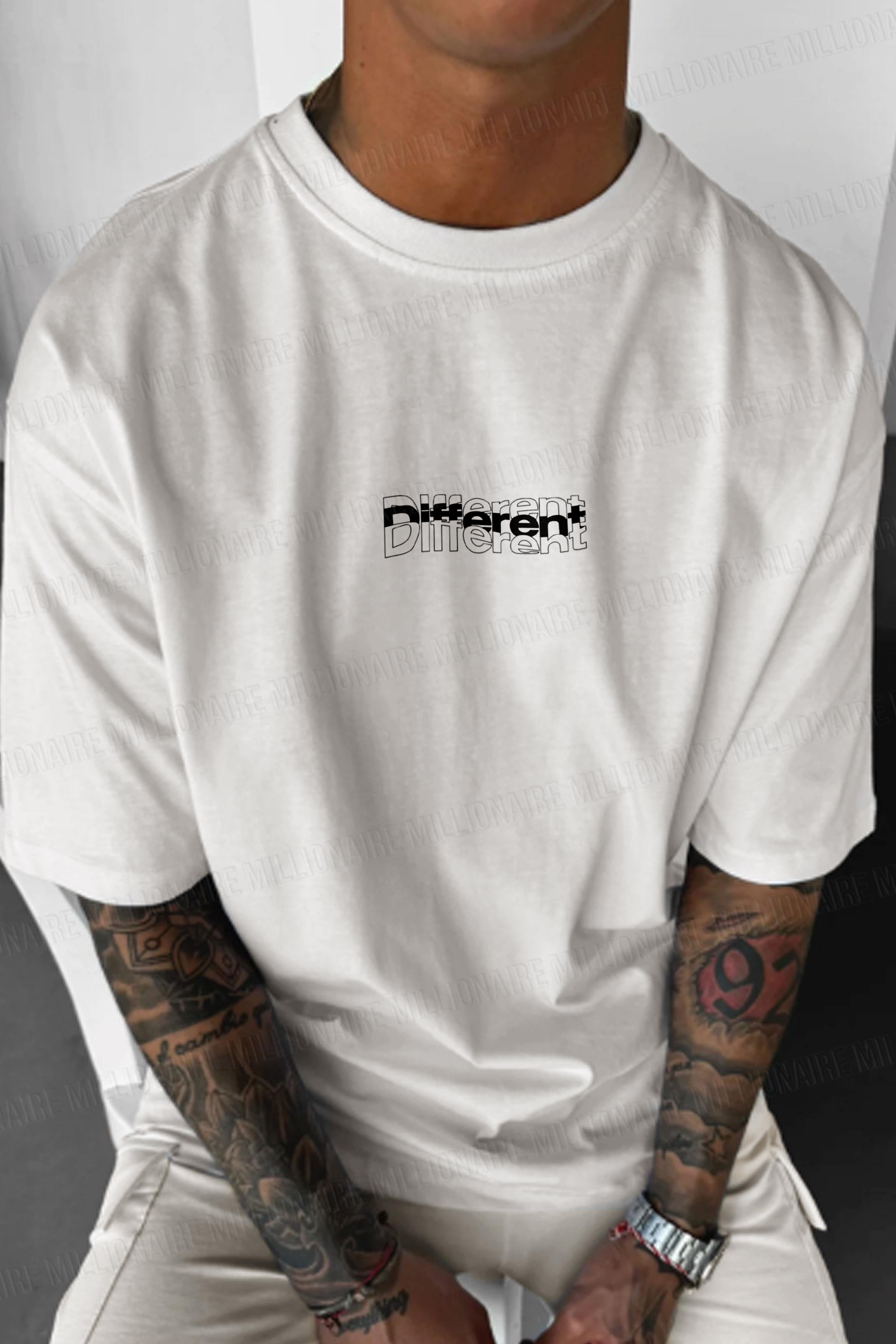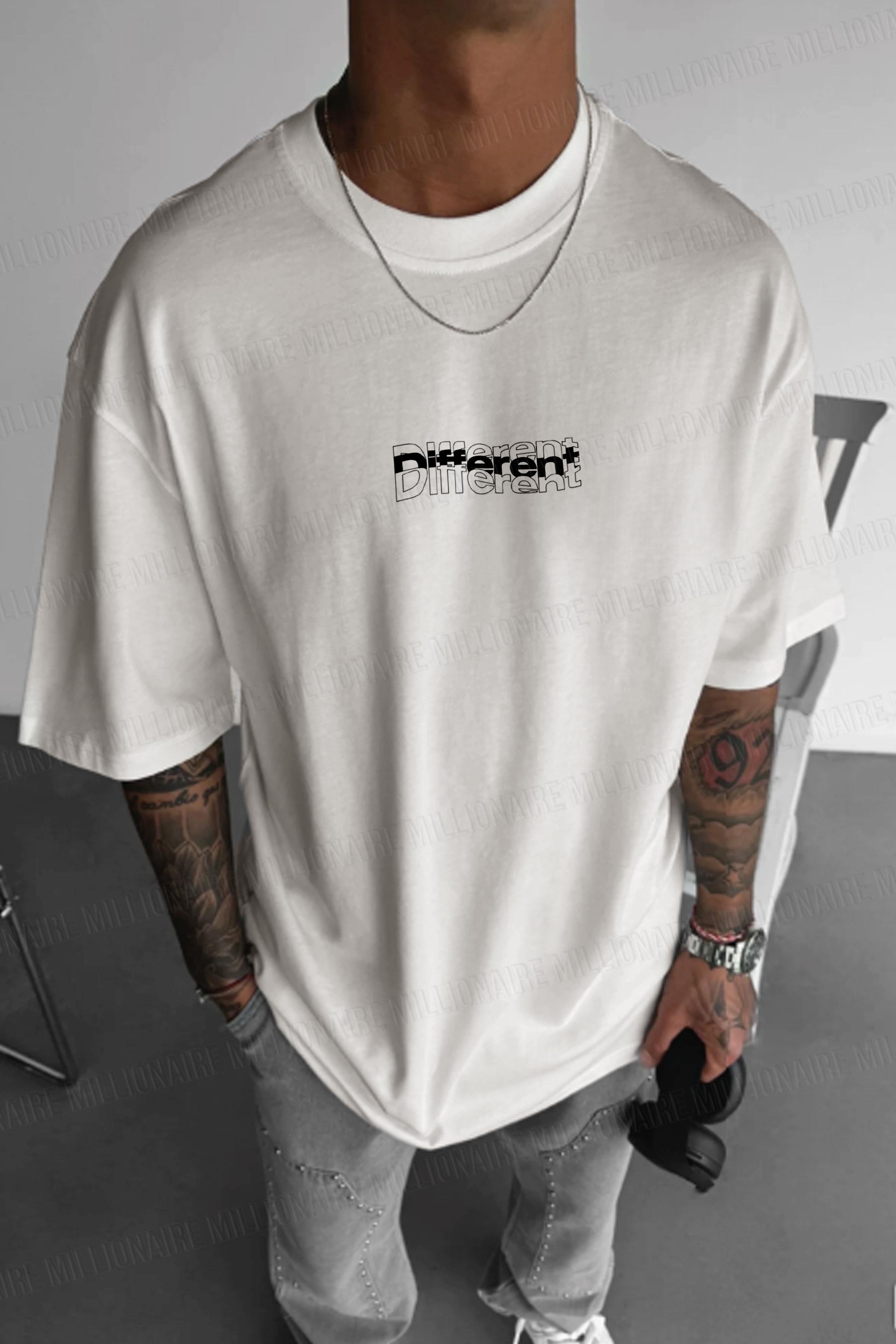 Erkek Ekru Beyaz Different Oversize Fit Bol Geniş Kalıp Salaş Kesim T-shirt (E2304)