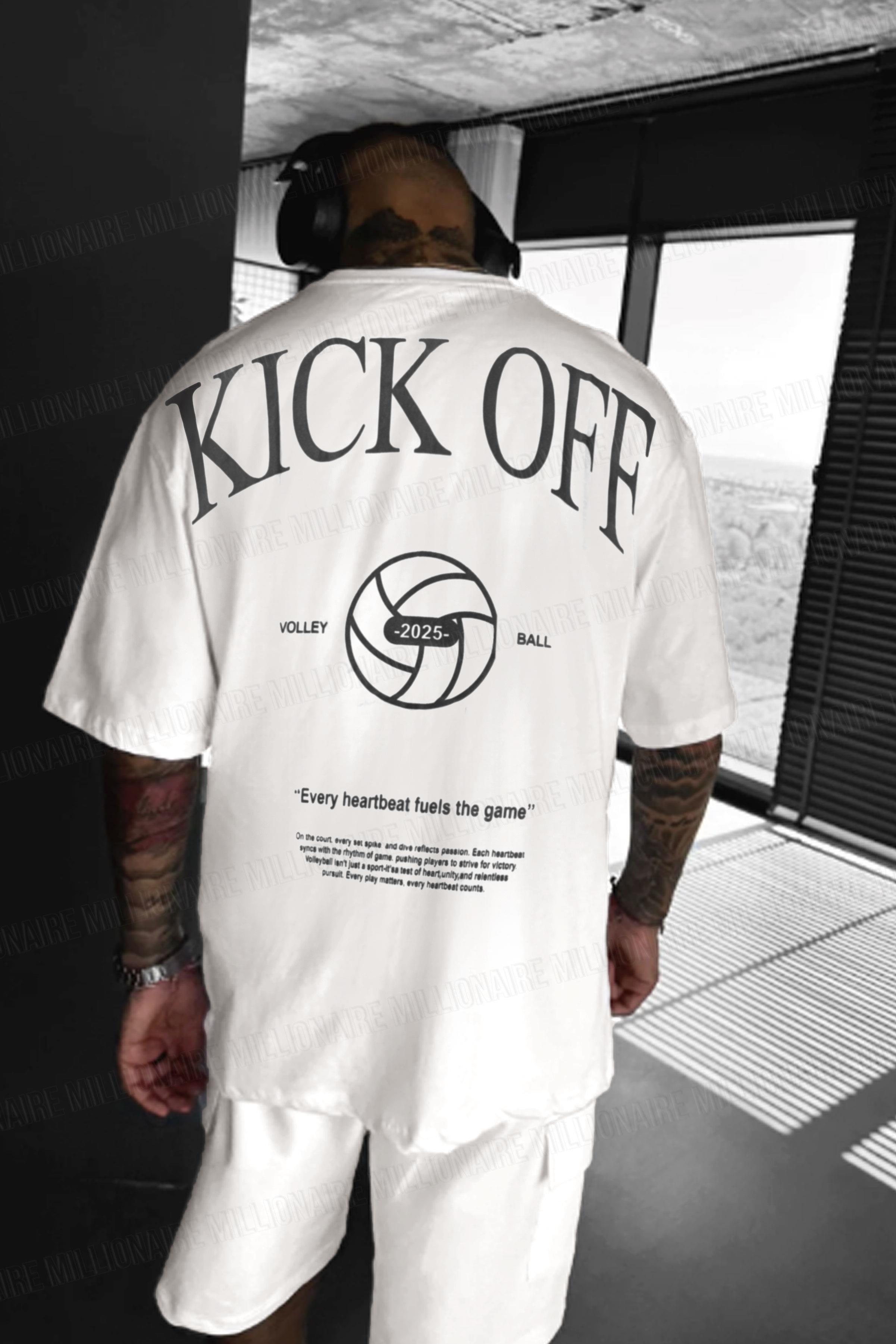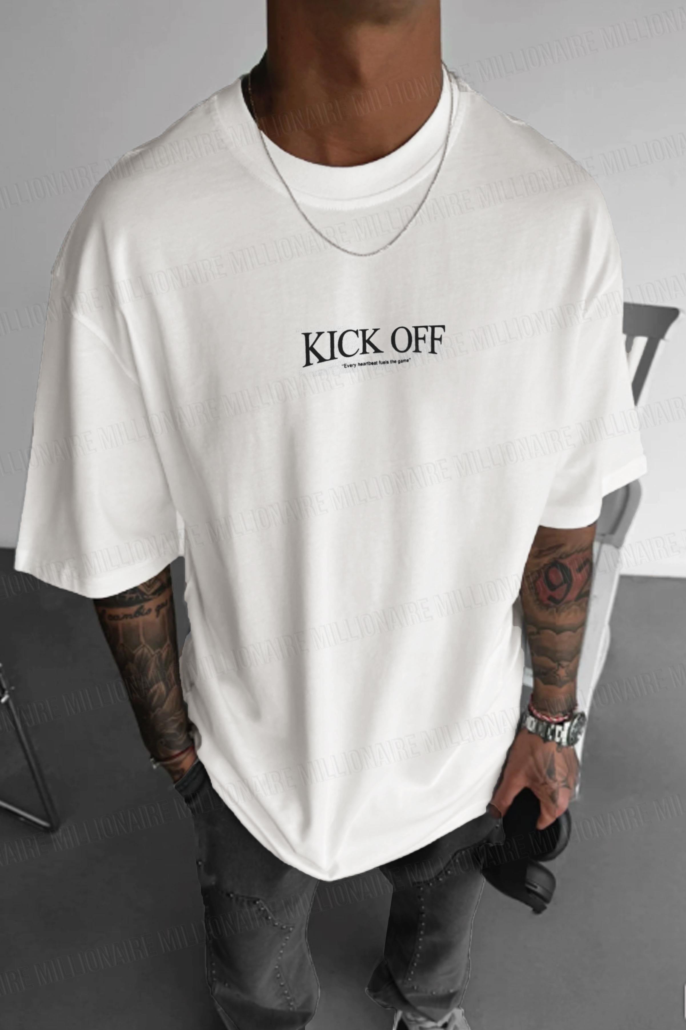 Erkek Ekru Beyaz Kick Off Oversize Fit Bol Geniş Kalıp Salaş Kesim T-shirt (E2310)