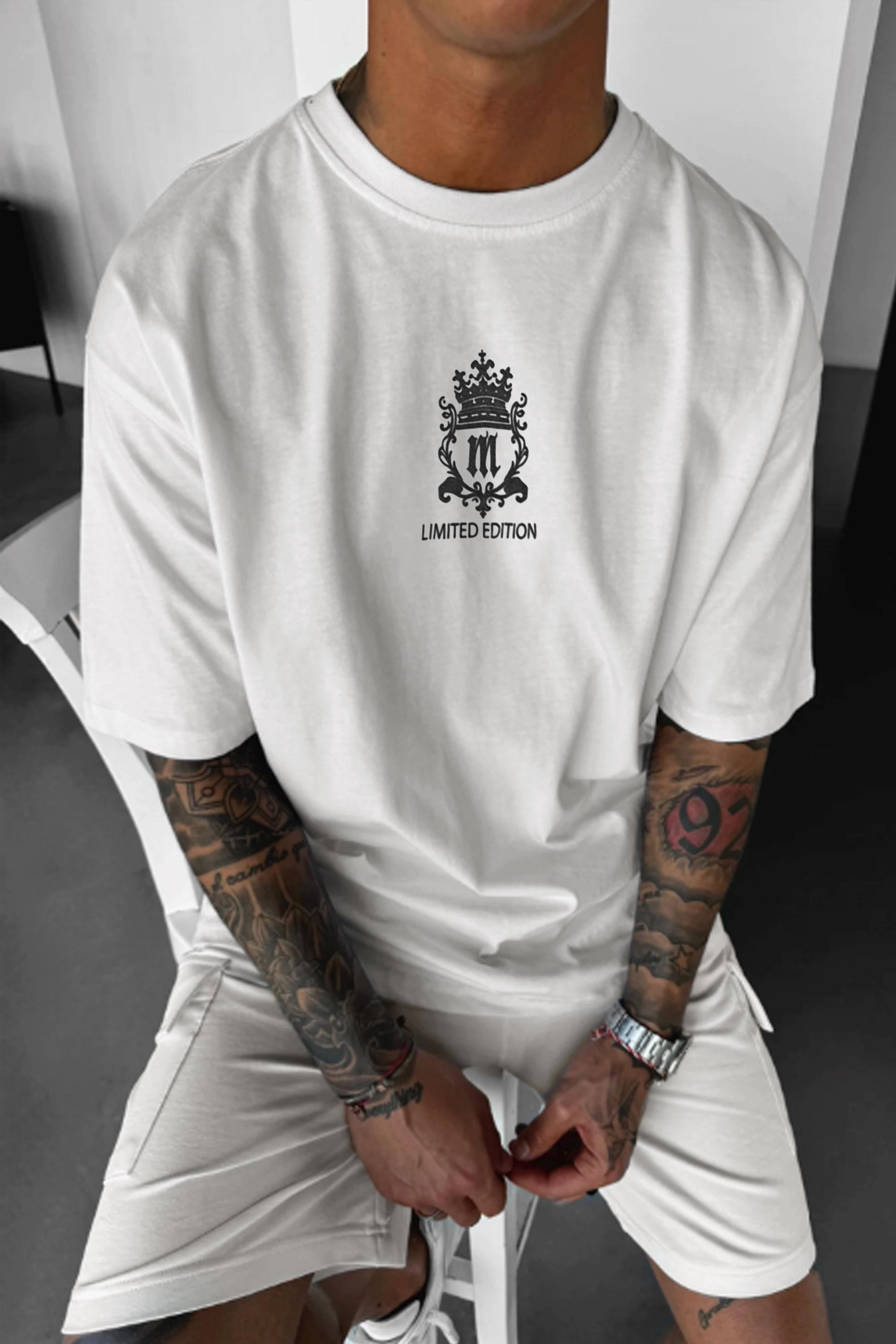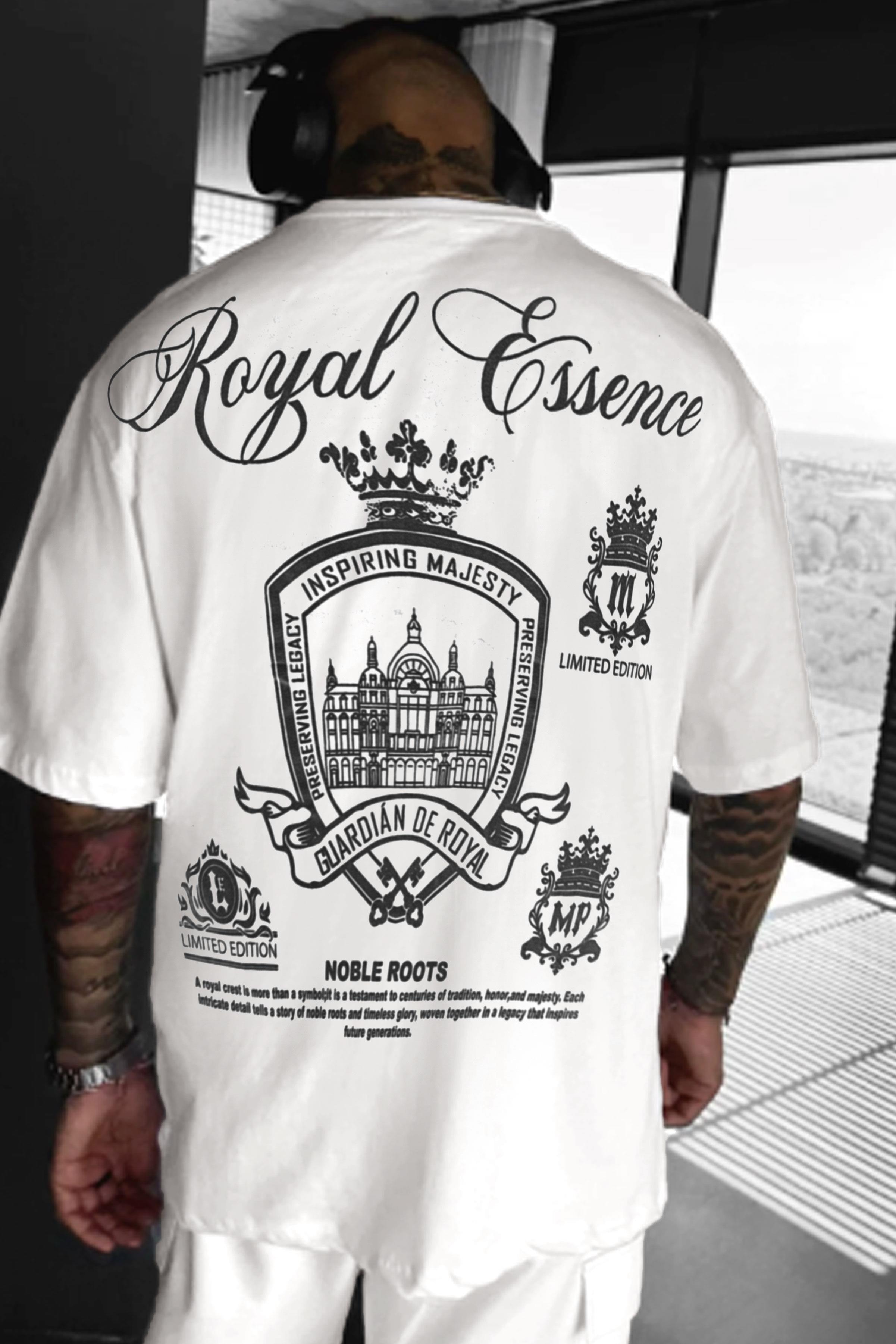 Erkek Ekru Beyaz Royal Essence Oversize Fit Bol Geniş Kalıp Salaş Kesim T-shirt (E2324)