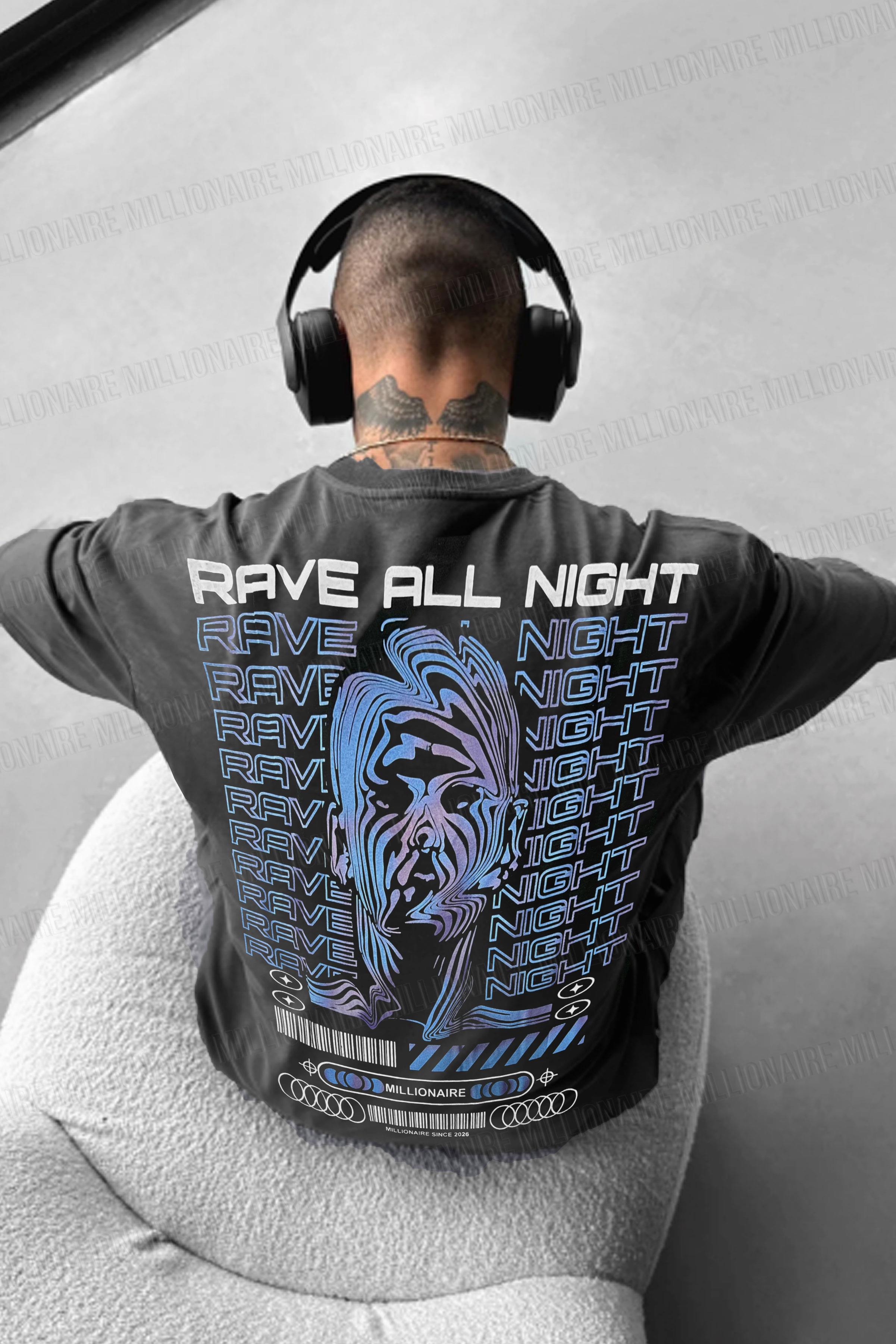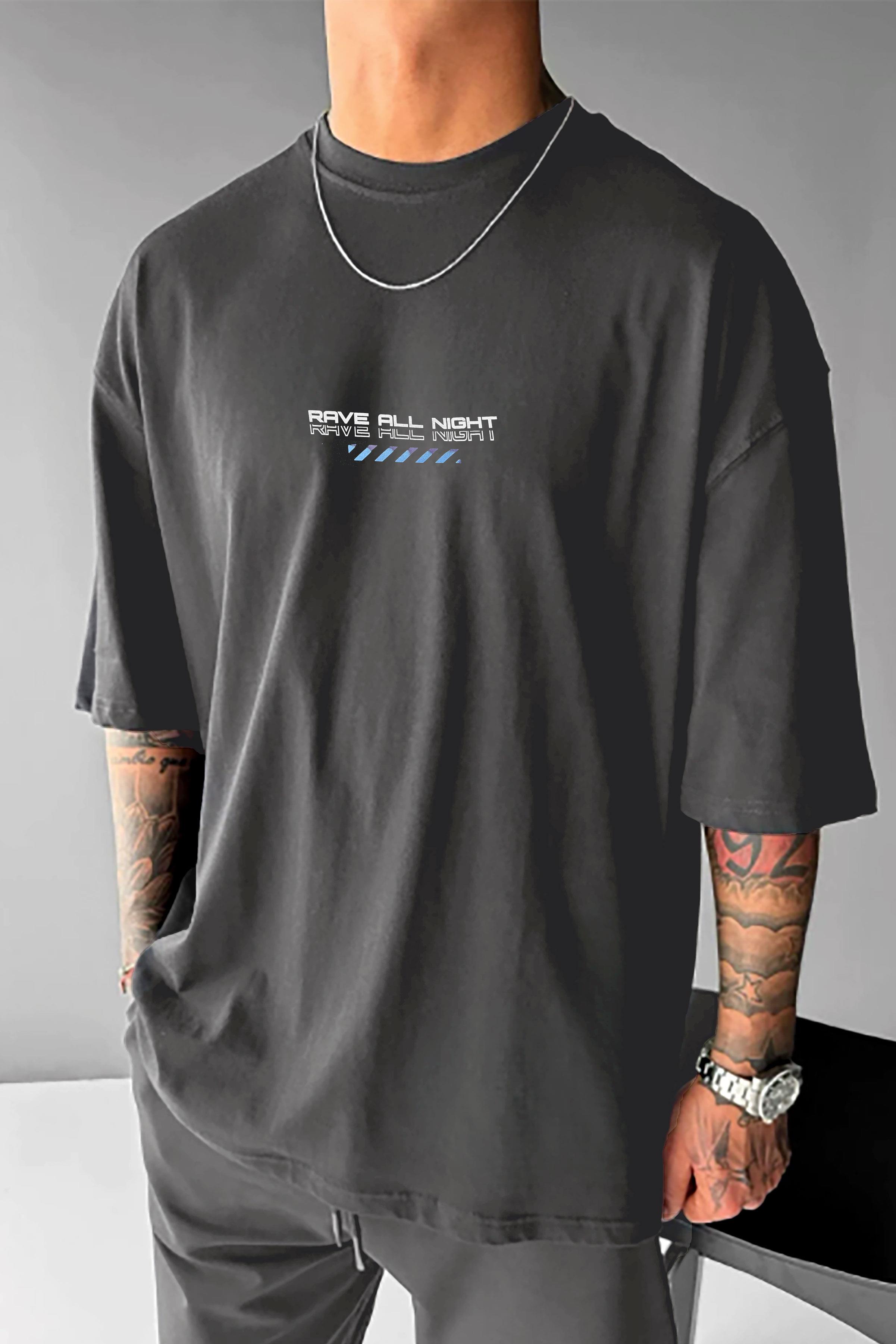 Erkek Füme Rave All Night Oversize Fit Bol Geniş Kalıp Salaş Kesim T-shirt (E2325)