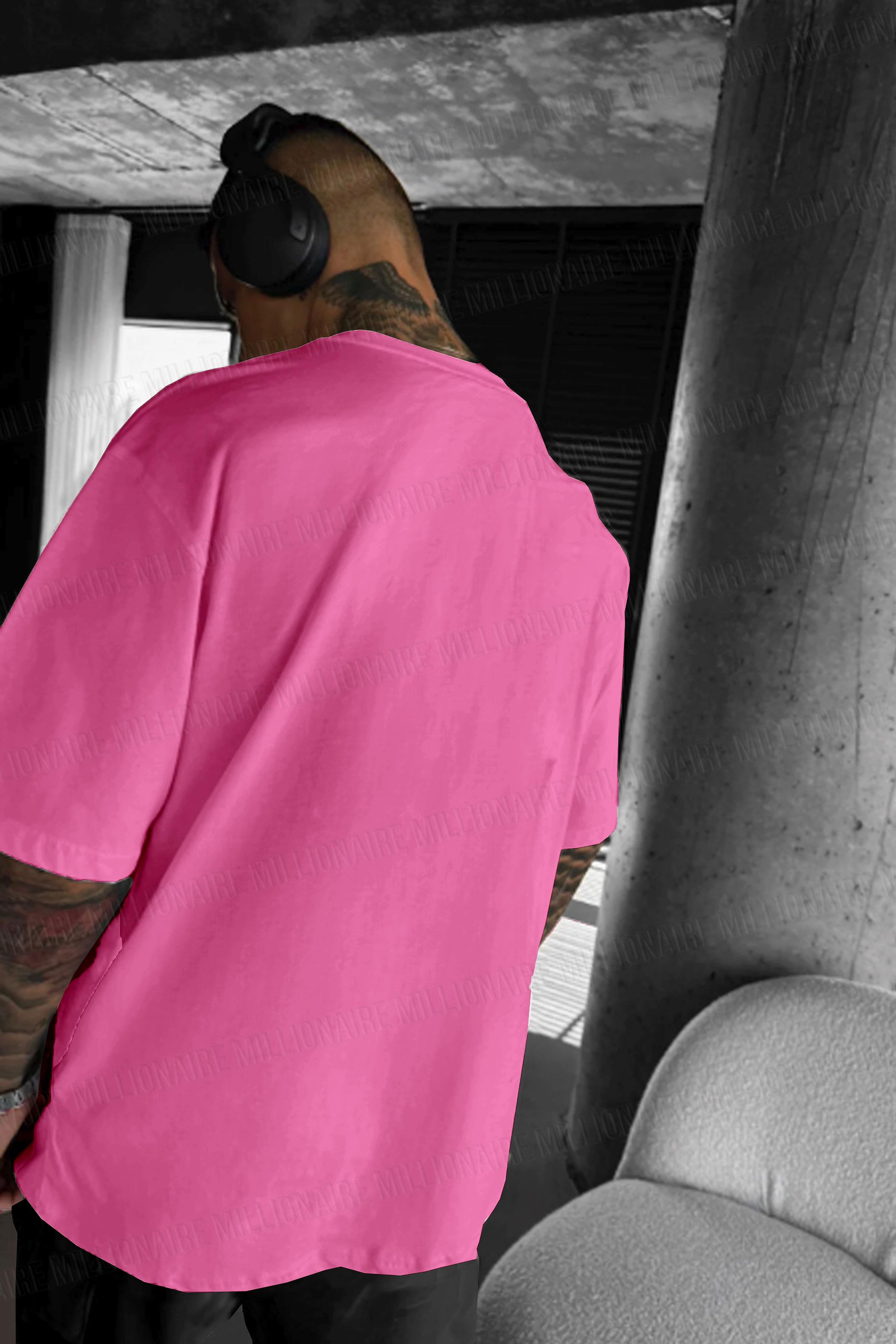 Erkek Fuşya Siluet Sensitive Content Oversize Fit Bol Geniş Kalıp Salaş Kesim T-shirt (E2309)
