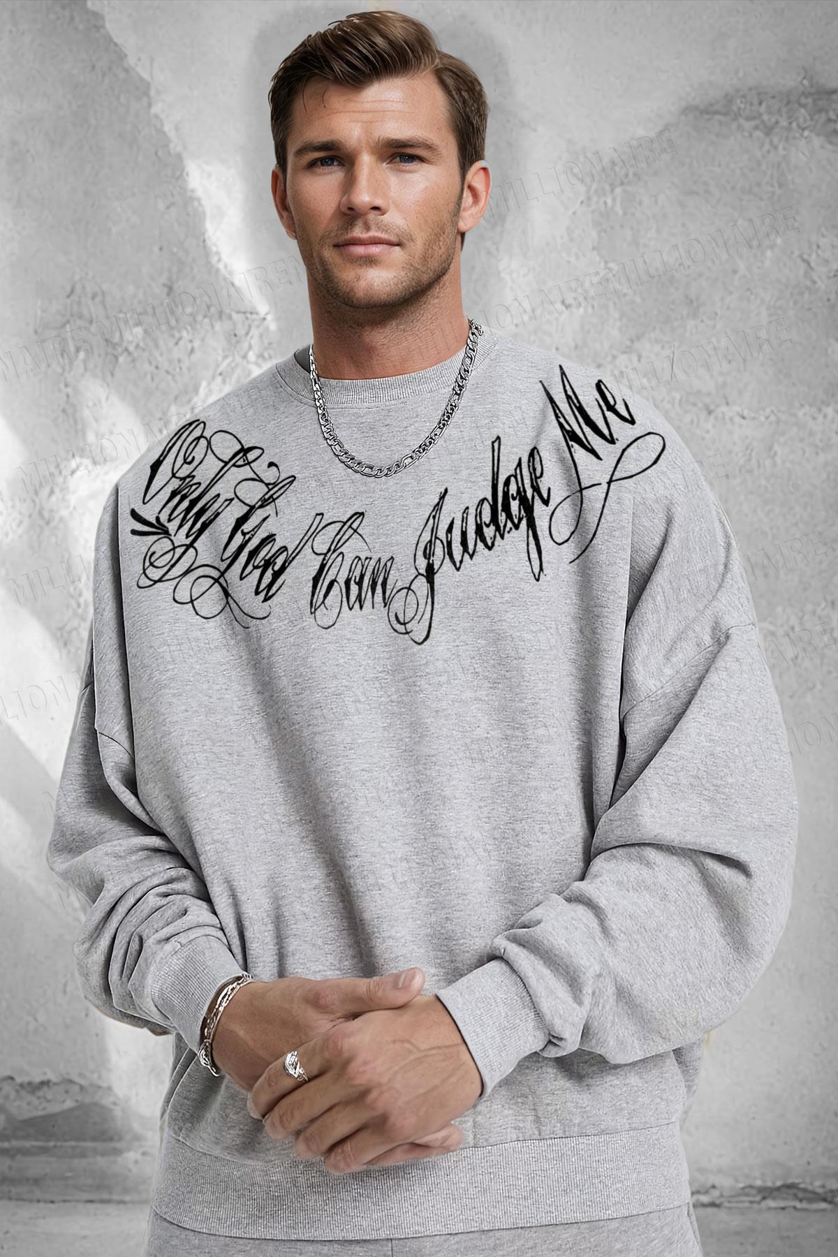 Erkek Gri Only God Baskılı 0 Sıfır Yaka Oversize Salaş Bol Kesim Polar Sweatshirt (EK3022)