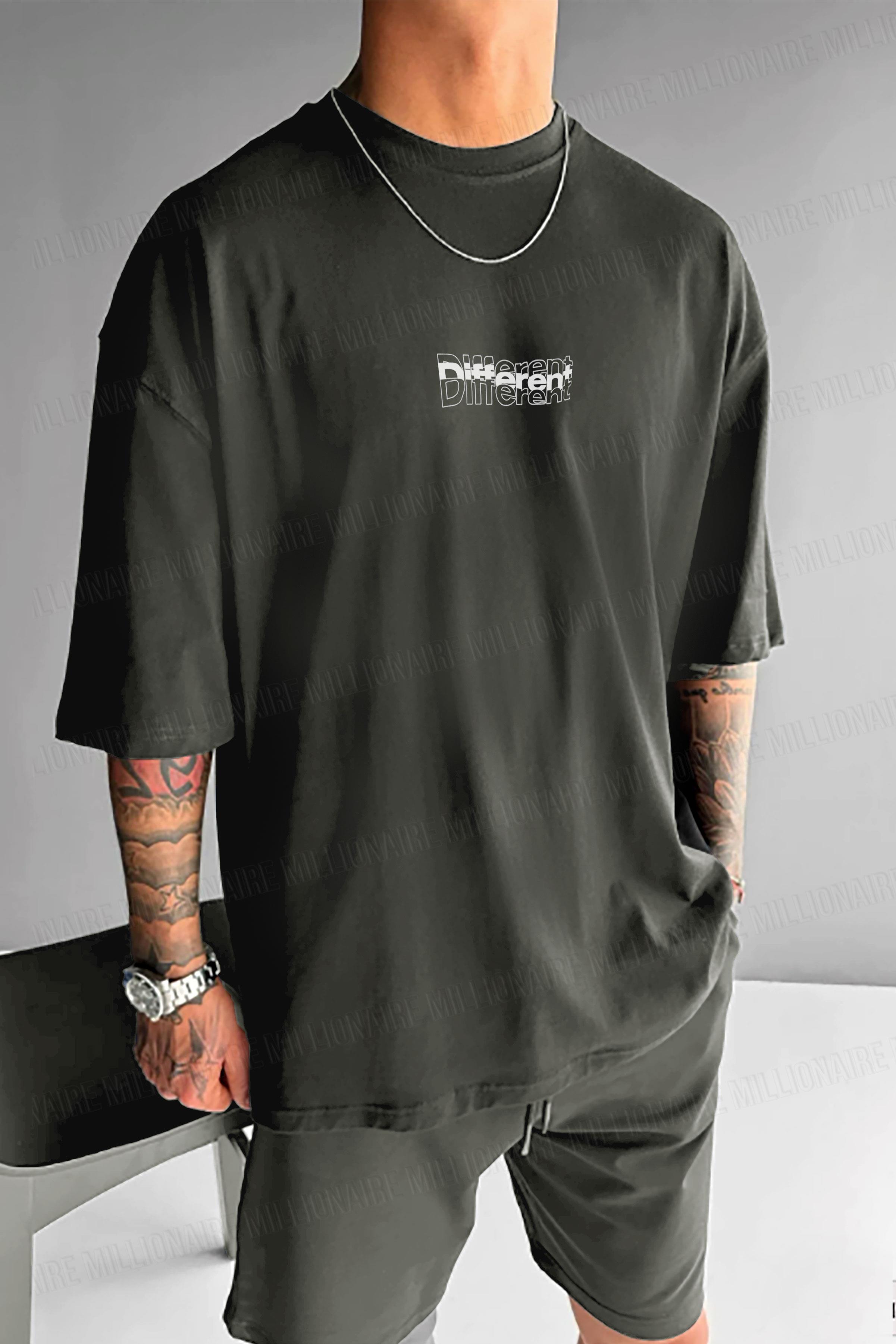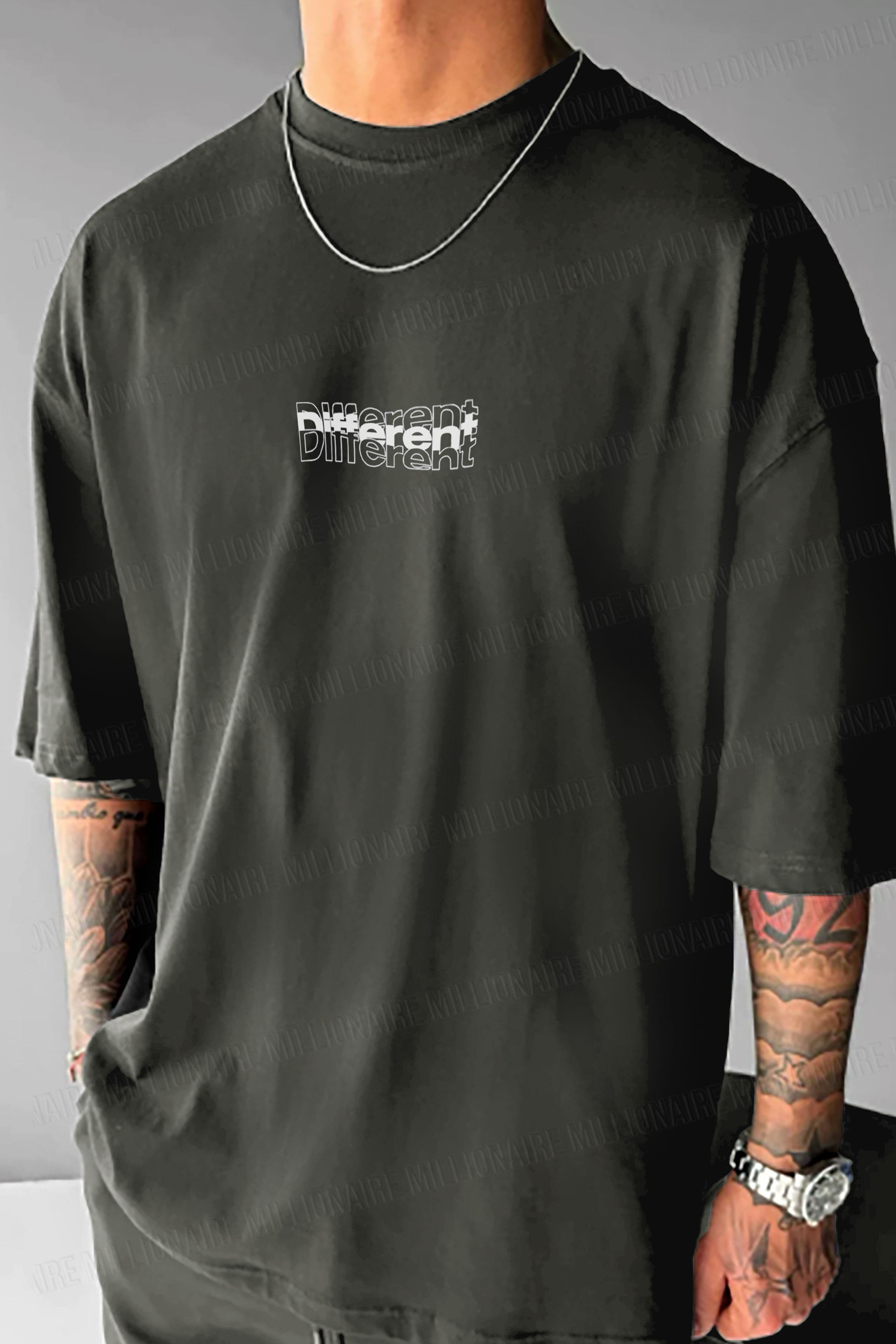 Erkek Haki Different Oversize Fit Bol Geniş Kalıp Salaş Kesim T-shirt (E2304)