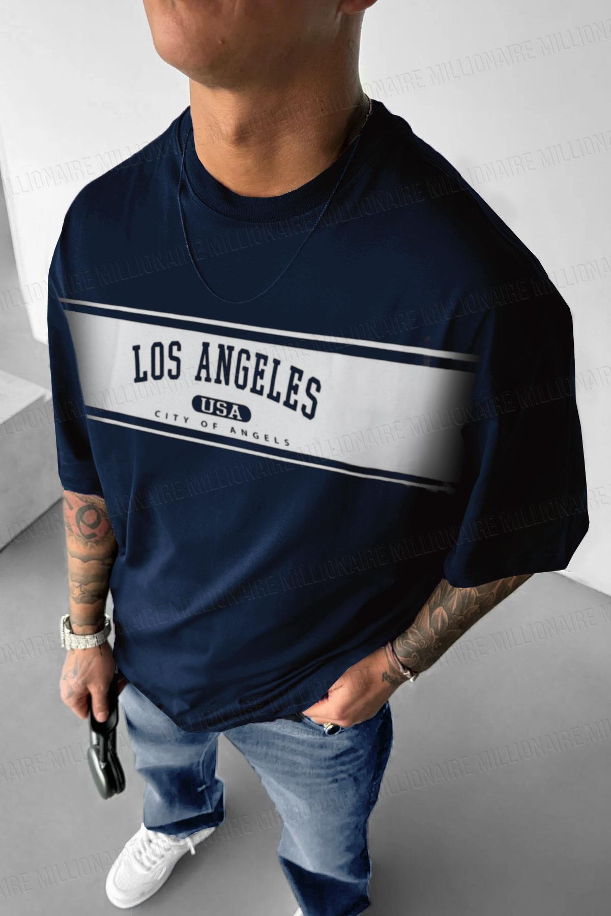 Erkek Lacivert City Of Angels Oversize Fit Bol Geniş Kalıp Salaş Kesim T-shirt (E2303)