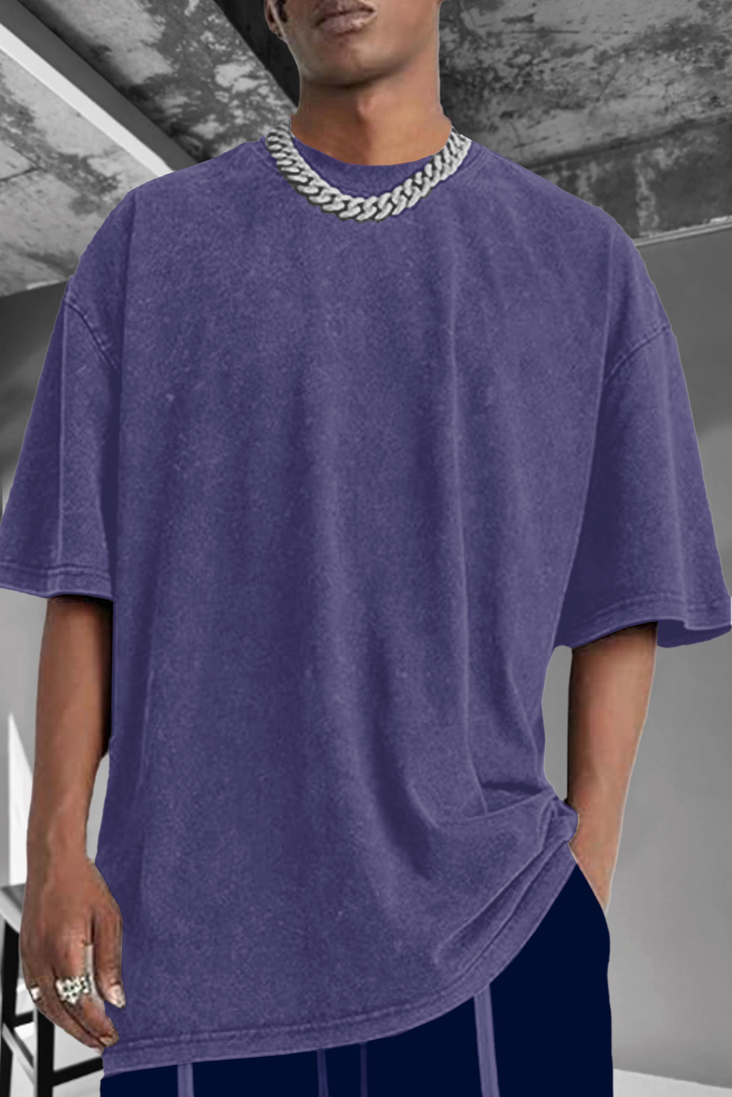 Erkek Mor Oversize Asit Yıkamalı Eskitme Efektli Boyalı T-Shirt (E2329)