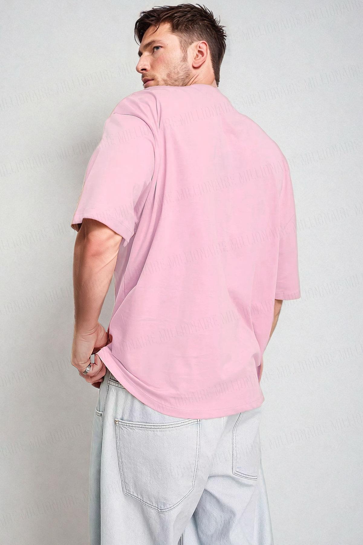 Erkek Pembe Basic Düz Baskısız Oversize Salas Boyfriend T-Shirt (E2211)