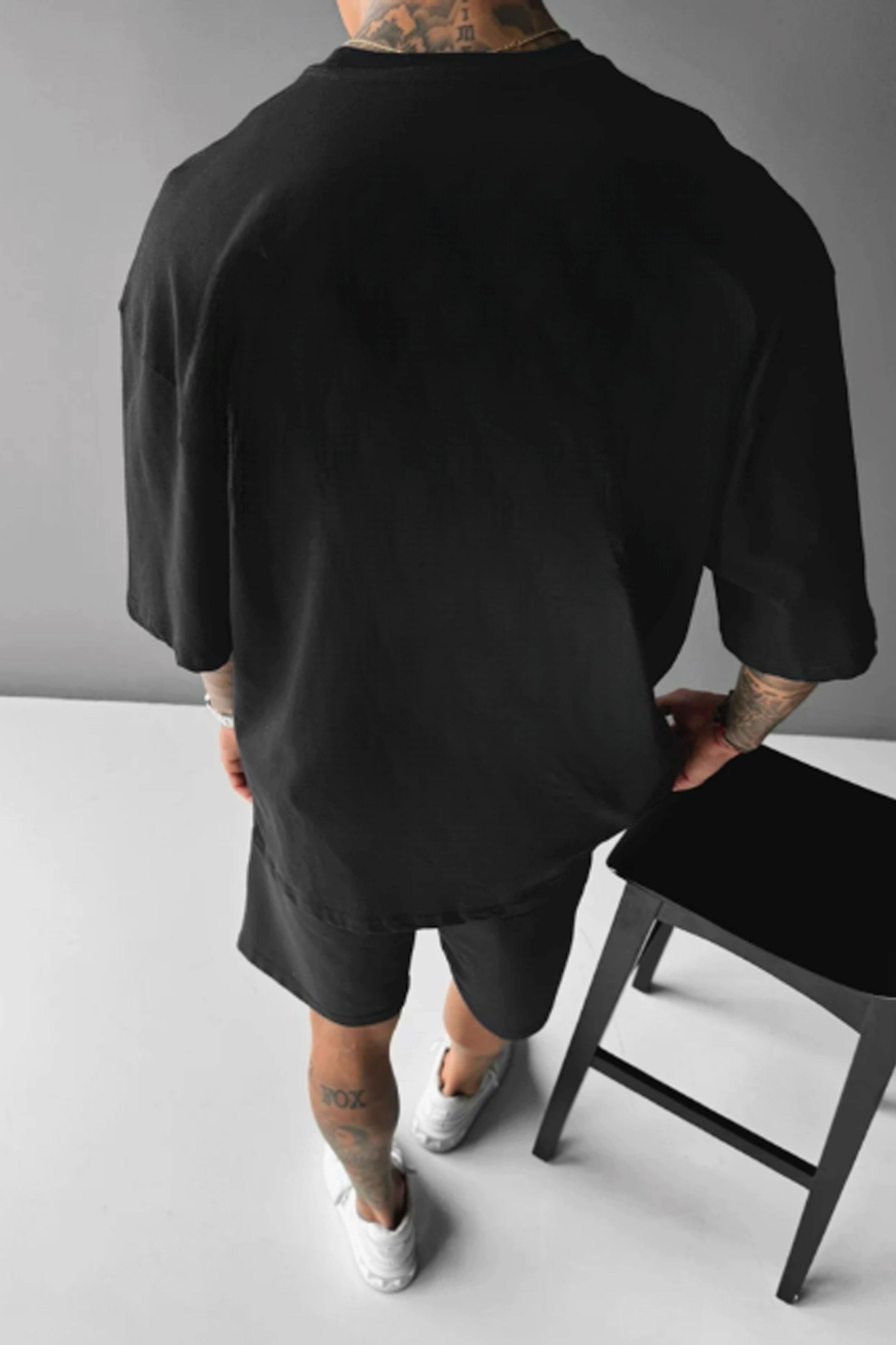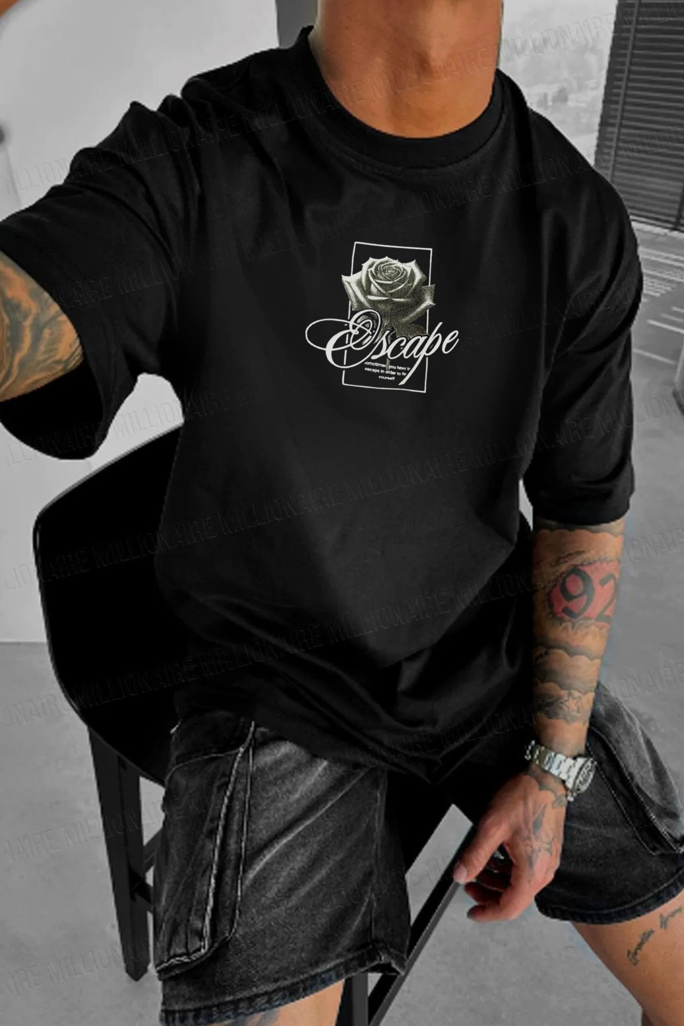 Erkek Siyah Black Rose Oversize Fit Bol Geniş Kalıp Salaş Kesim T-shirt (E2317)