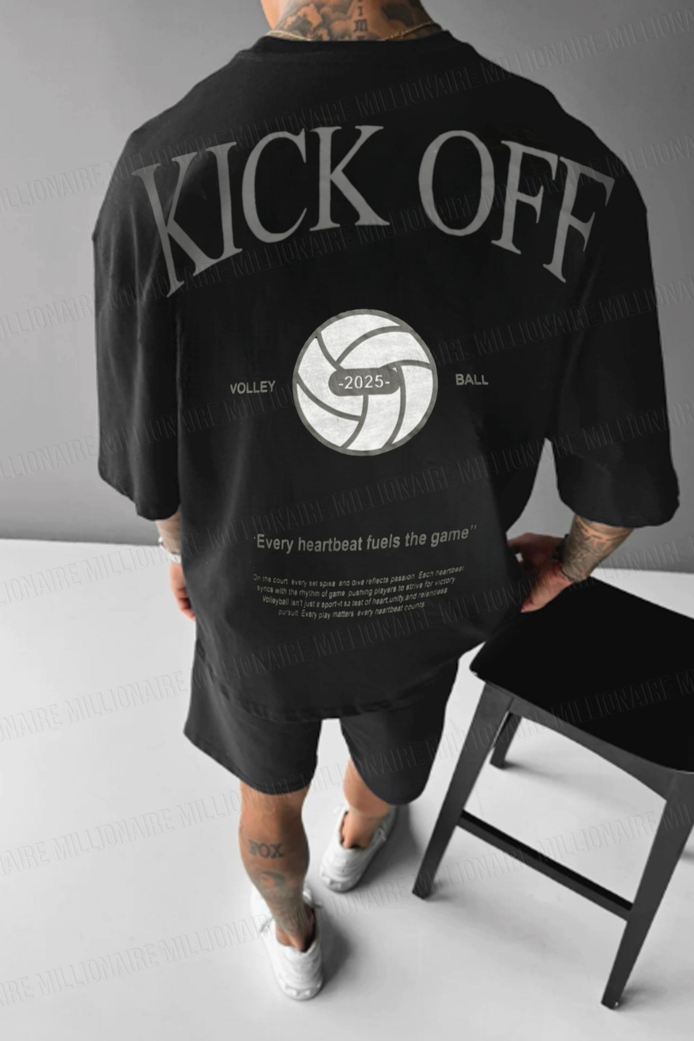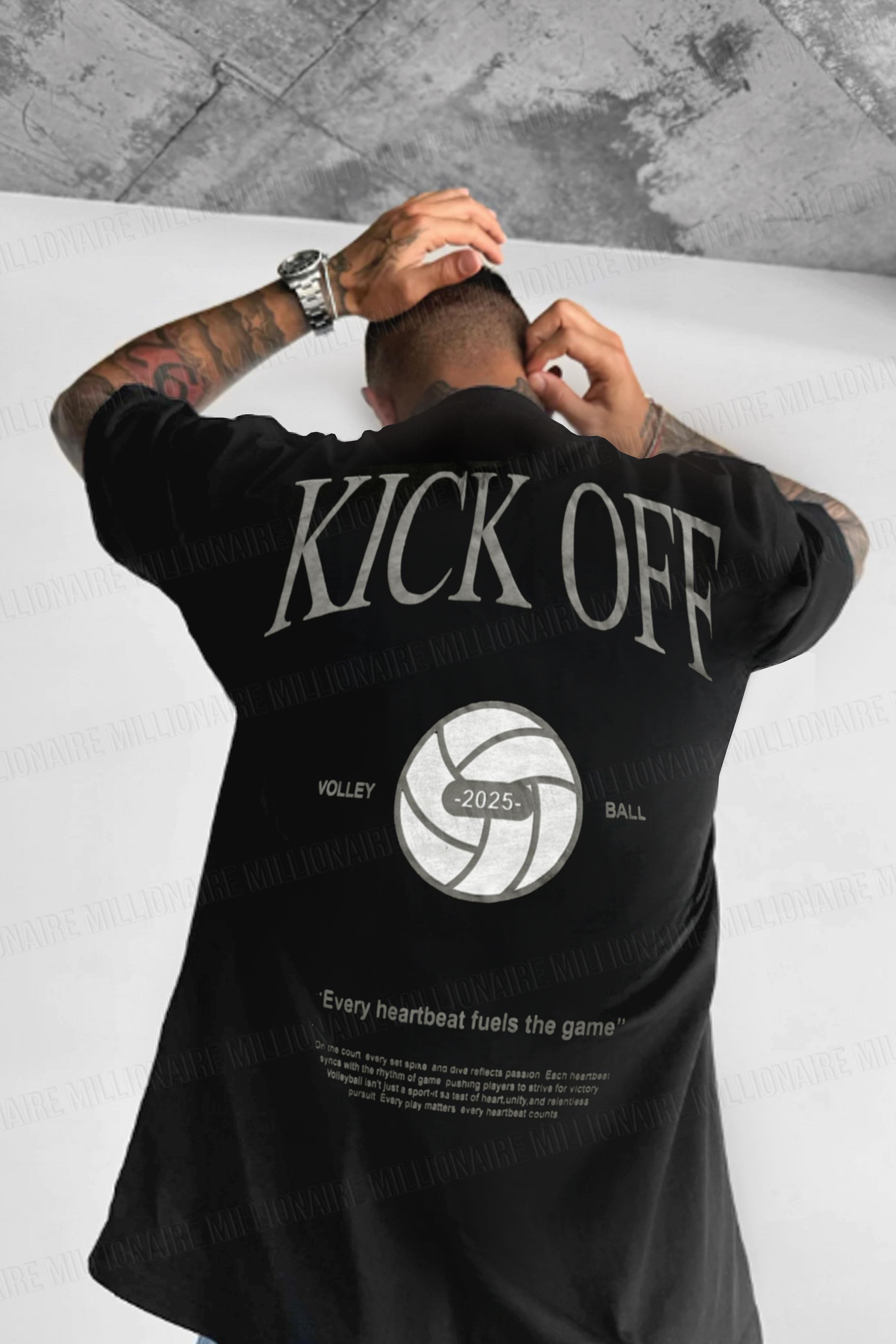 Erkek Siyah Kick Off Oversize Fit Bol Geniş Kalıp Salaş Kesim T-shirt (E2310)
