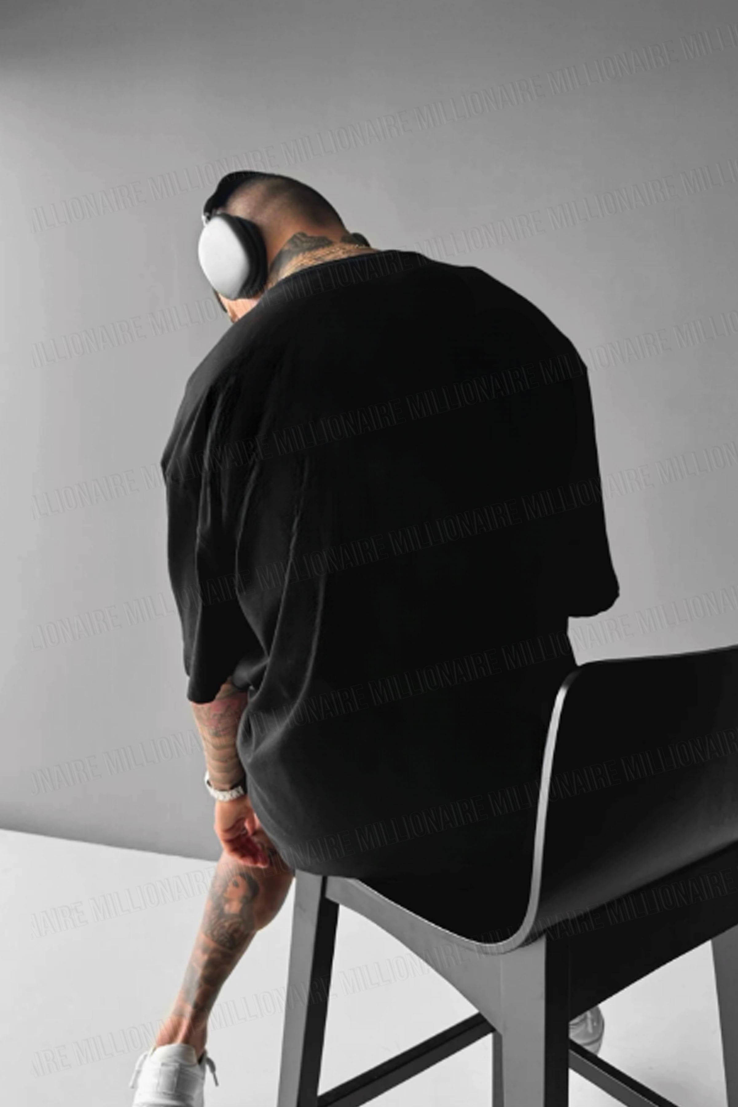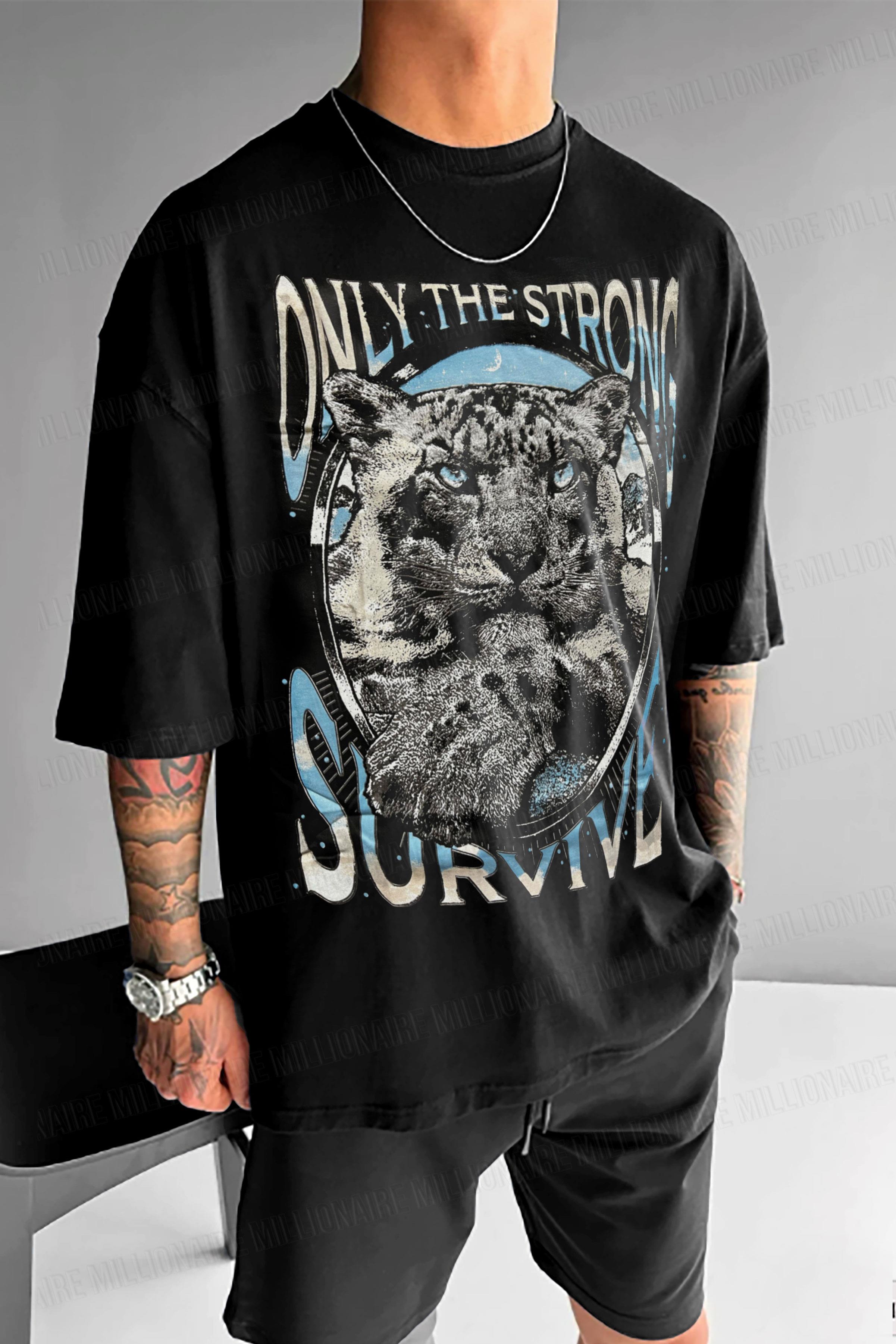 Erkek Siyah Survive Oversize Fit Bol Geniş Kalıp Salaş Kesim T-shirt (E2314)