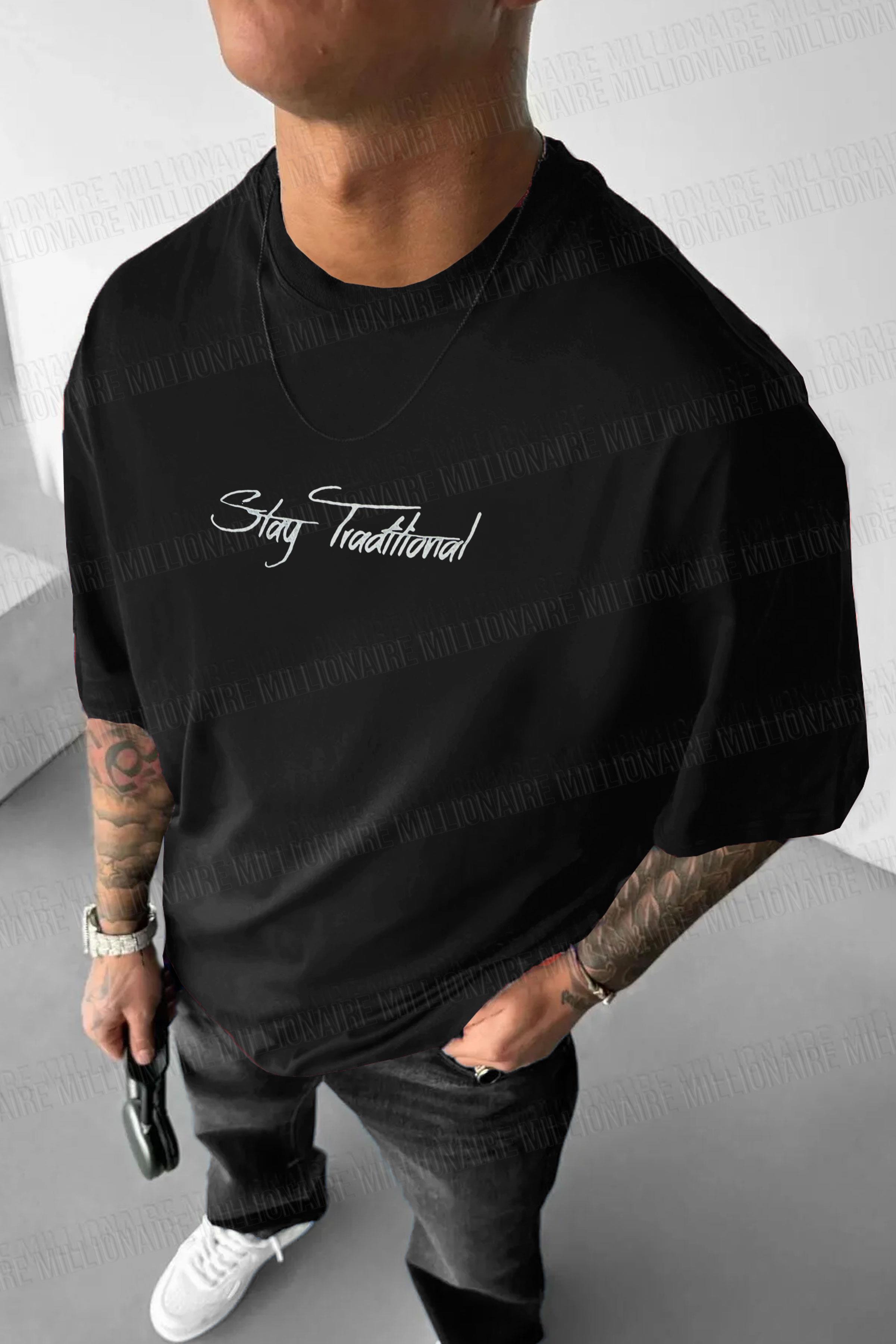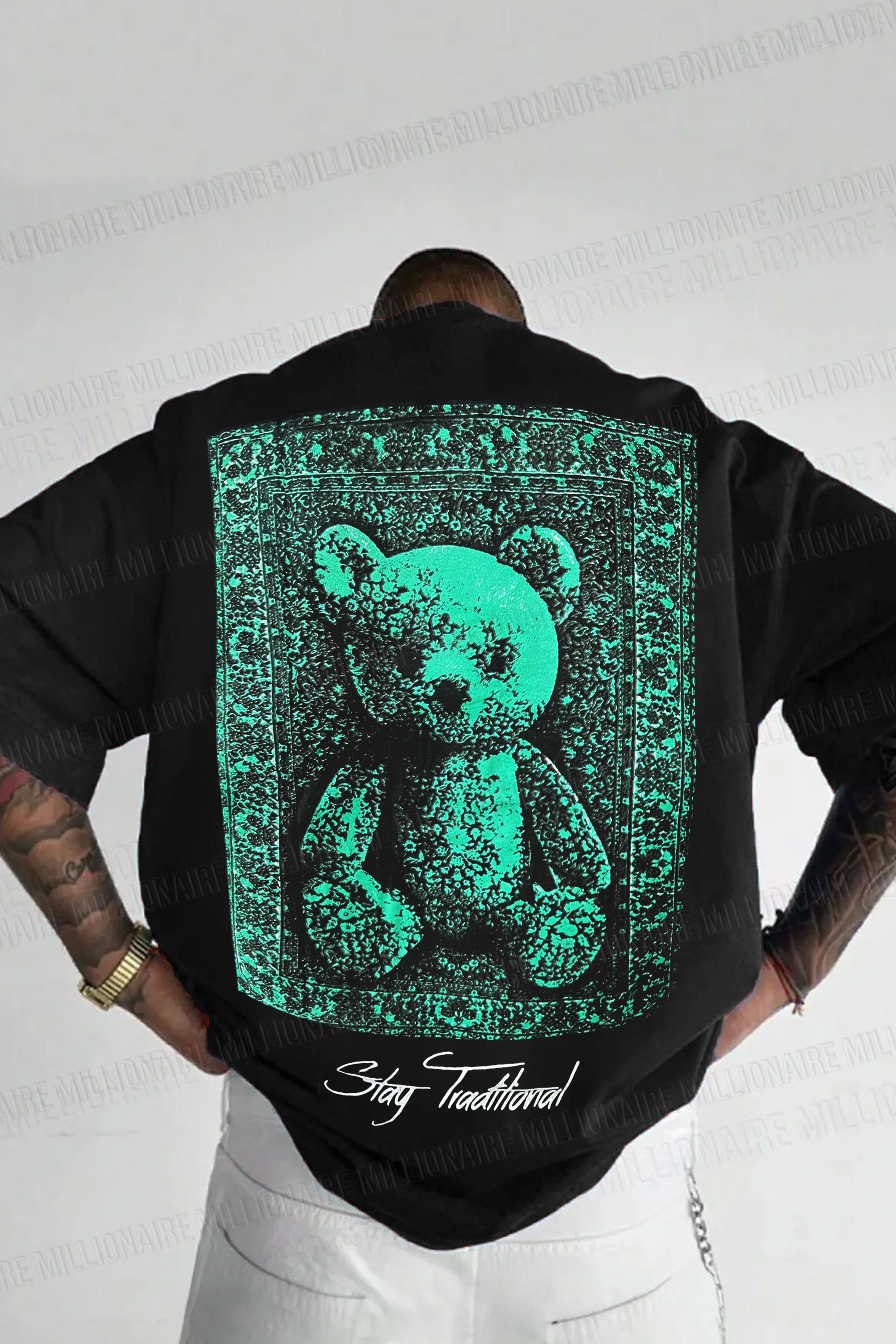Erkek Siyah Traditional Ayıcık Teddy Bear Oversize Fit Bol Geniş Kalıp Salaş Kesim T-Shirt (E2326)