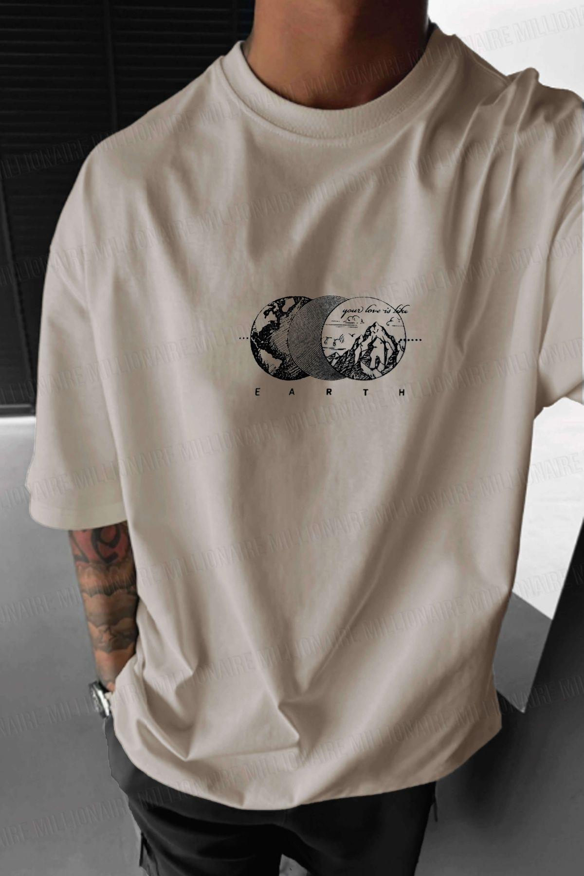 Erkek Taş Earth Oversize Fit Bol Geniş Kalıp Salaş Kesim T-shirt (E2302)