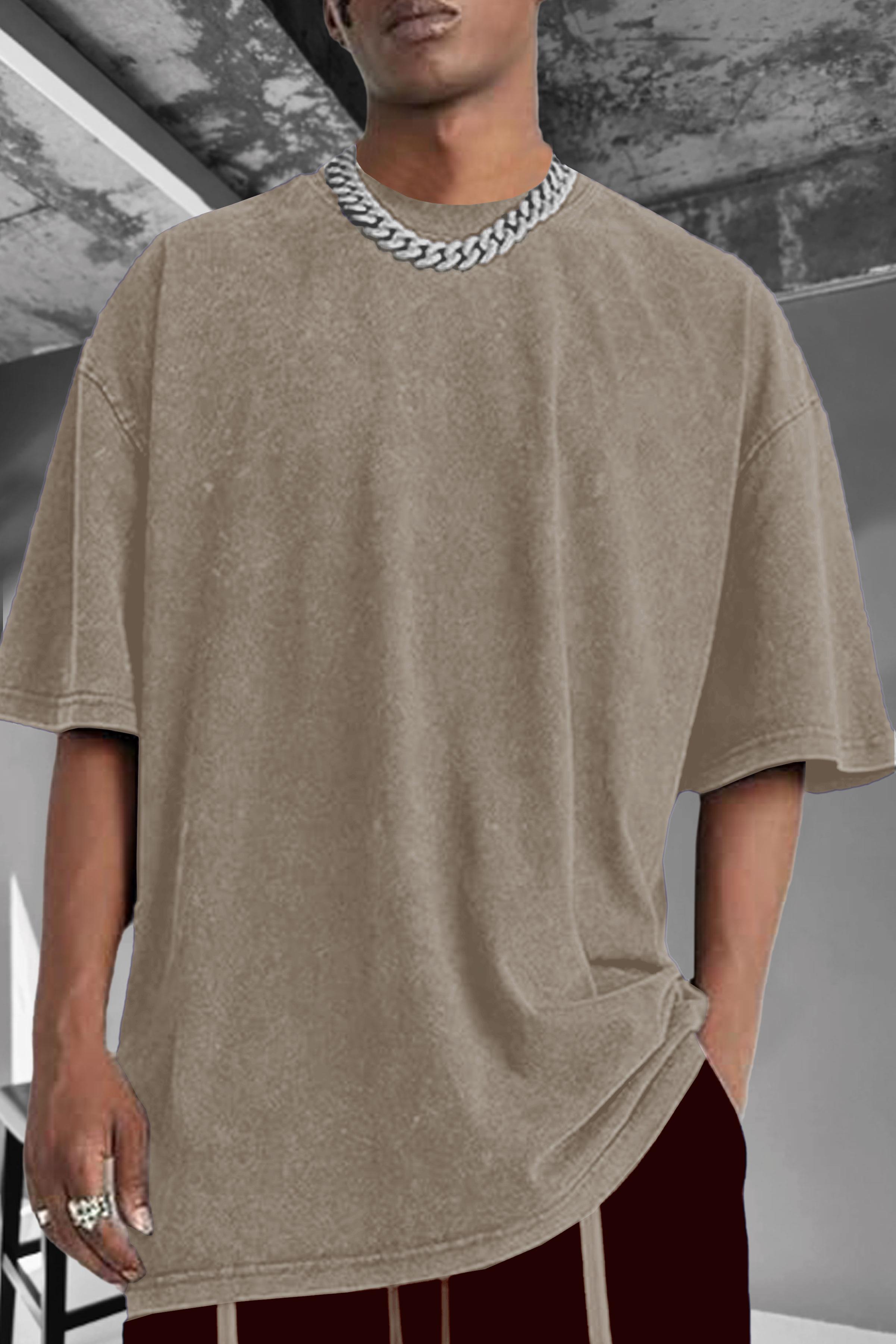 Erkek Taş Oversize Asit Yıkamalı Eskitme Efektli Boyalı T-Shirt (E2329)
