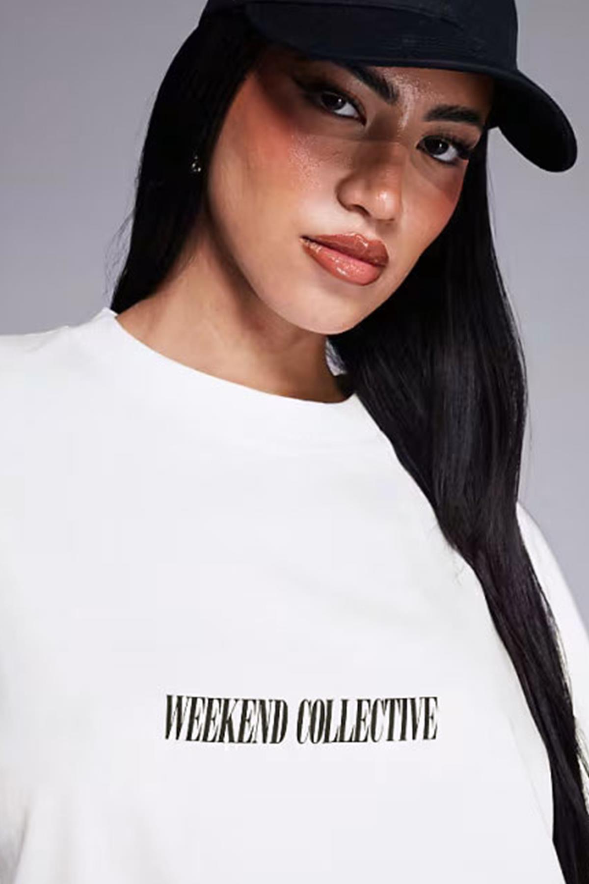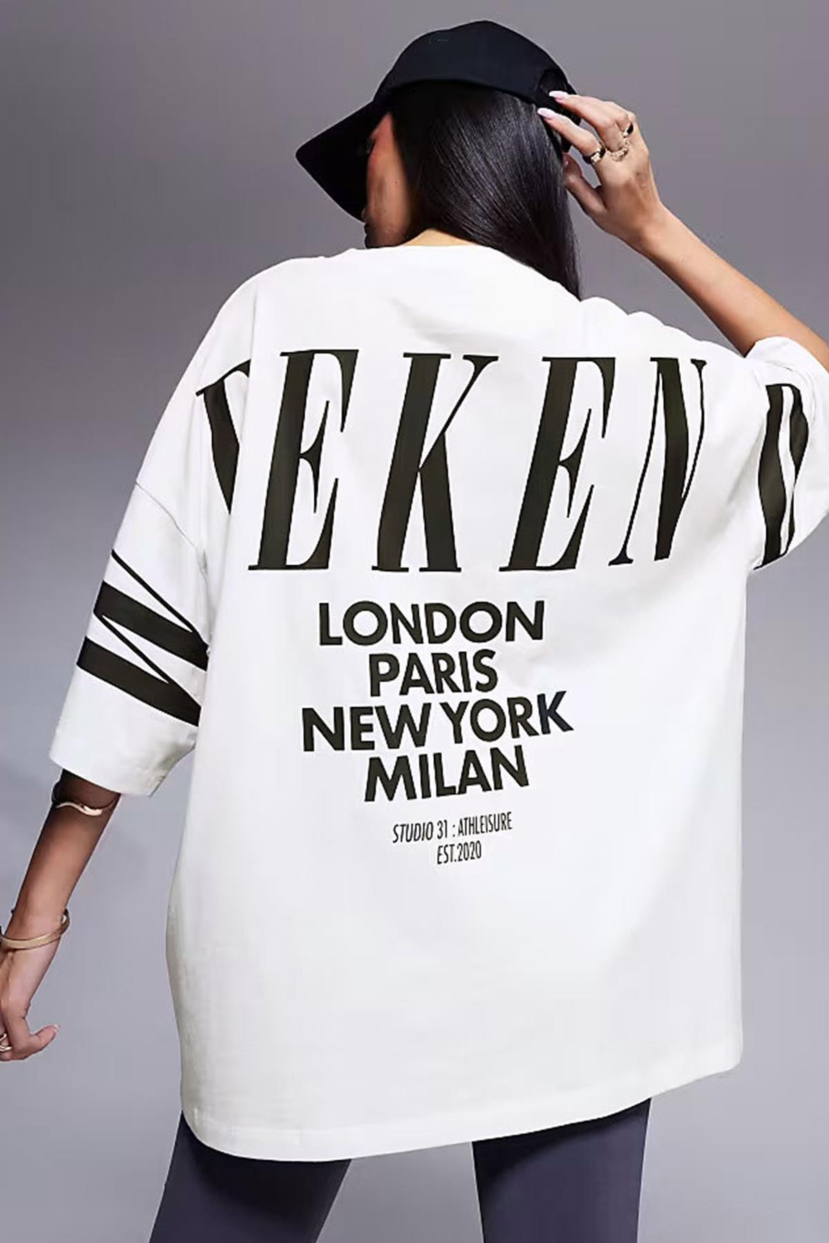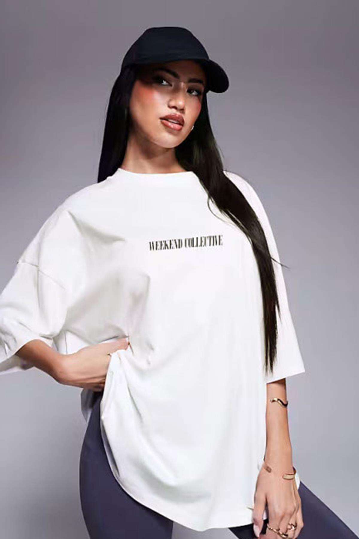 Kadın Ekru Beyaz Weekend Oversize Fit Bol Geniş Kalıp Salaş Kesim T-shirt (K2320)