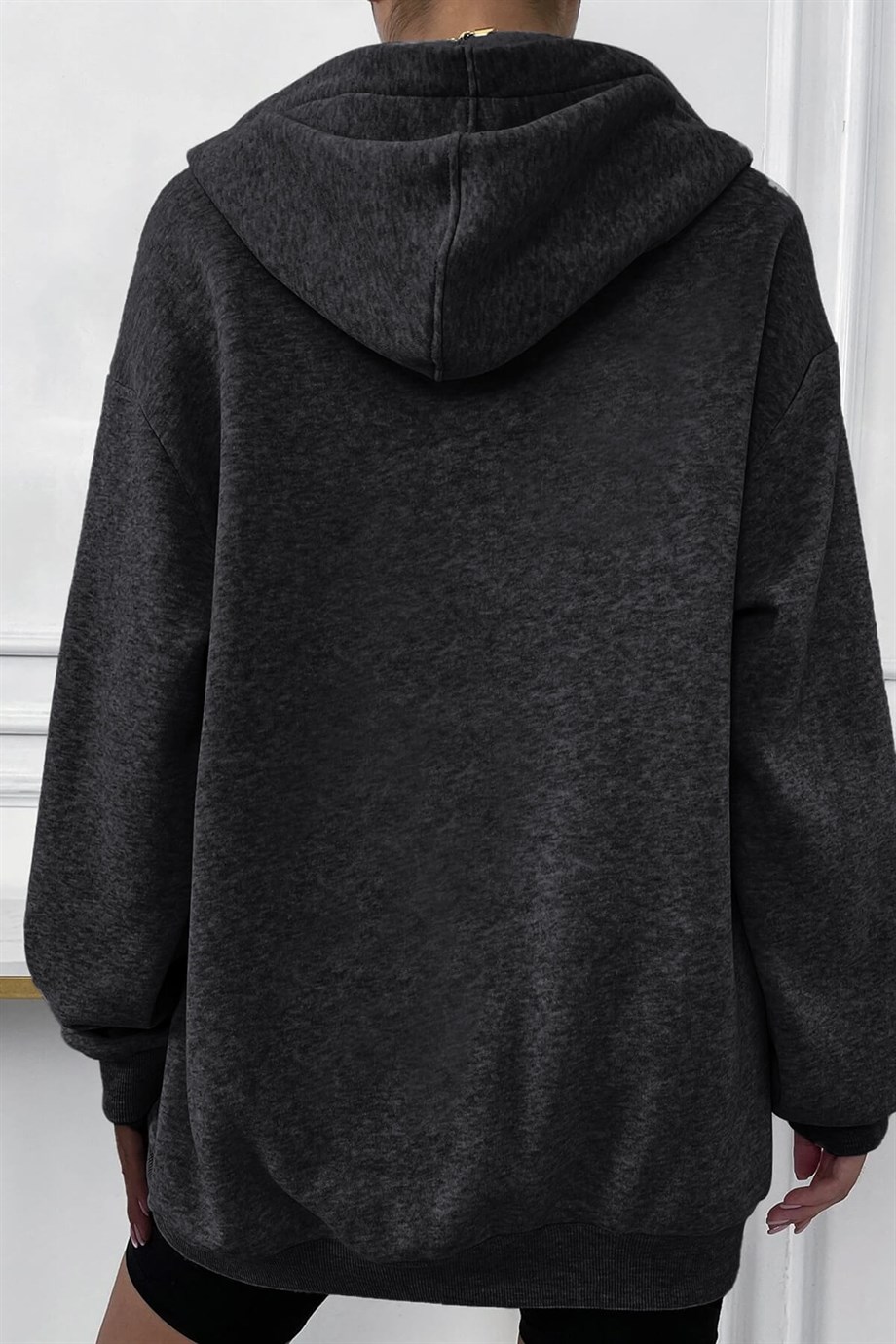 Kadin Antrasit Kapüşonlu Fermuarlı 3 Üç İplik Polar Kanguru Oversize Sweatshirt Zip Up Hoodie (K2204)