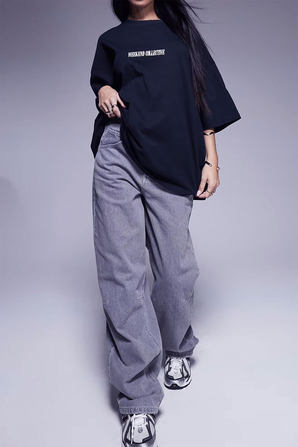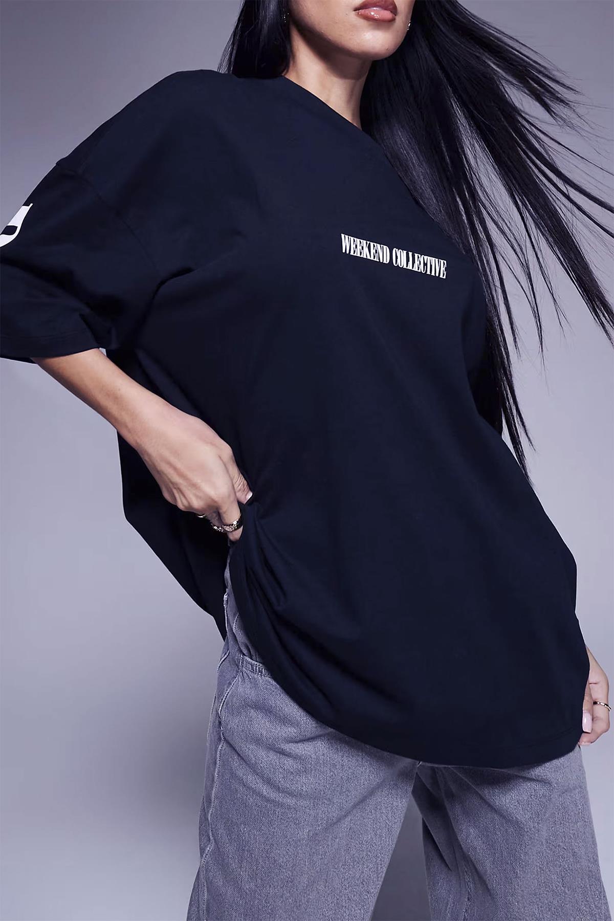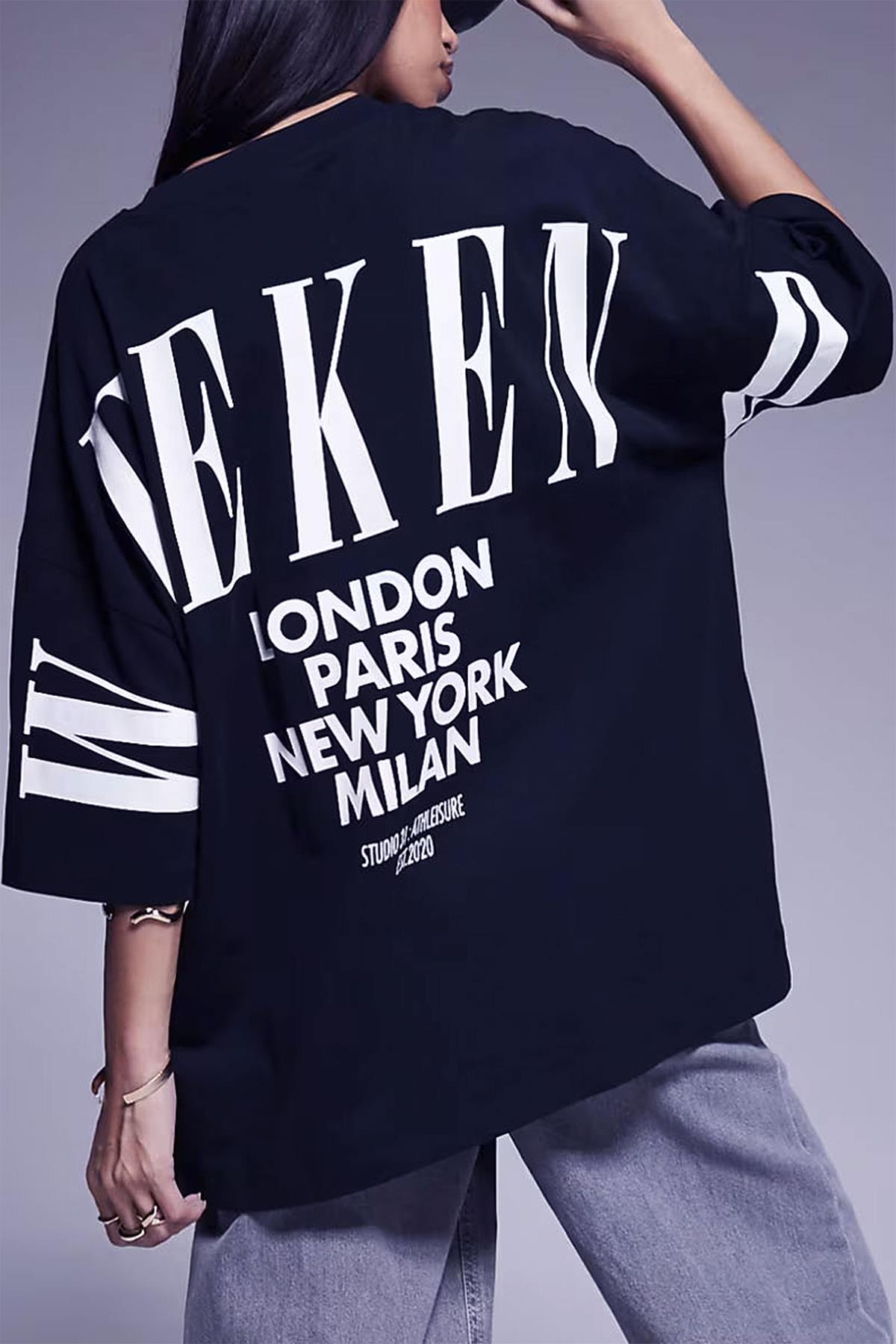 Kadın Lacivert Weekend Oversize Fit Bol Geniş Kalıp Salaş Kesim T-shirt (K2320)