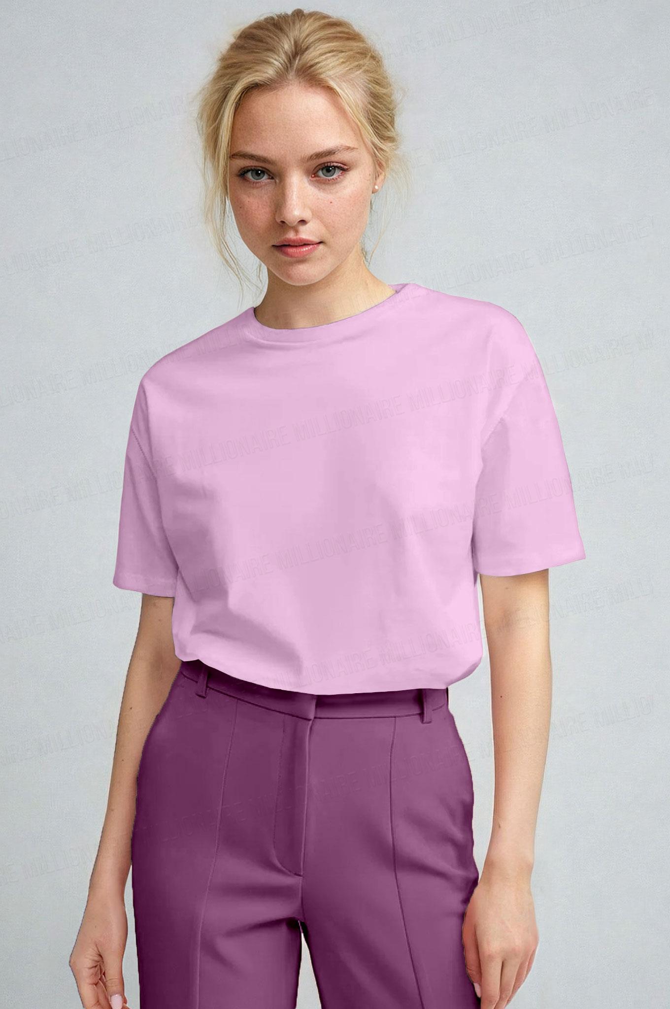 Kadın Pembe Nefes Alan Bisiklet Yaka Regular Fit Normal Kesim Baskisiz Basic T-Shirt (RK2211)