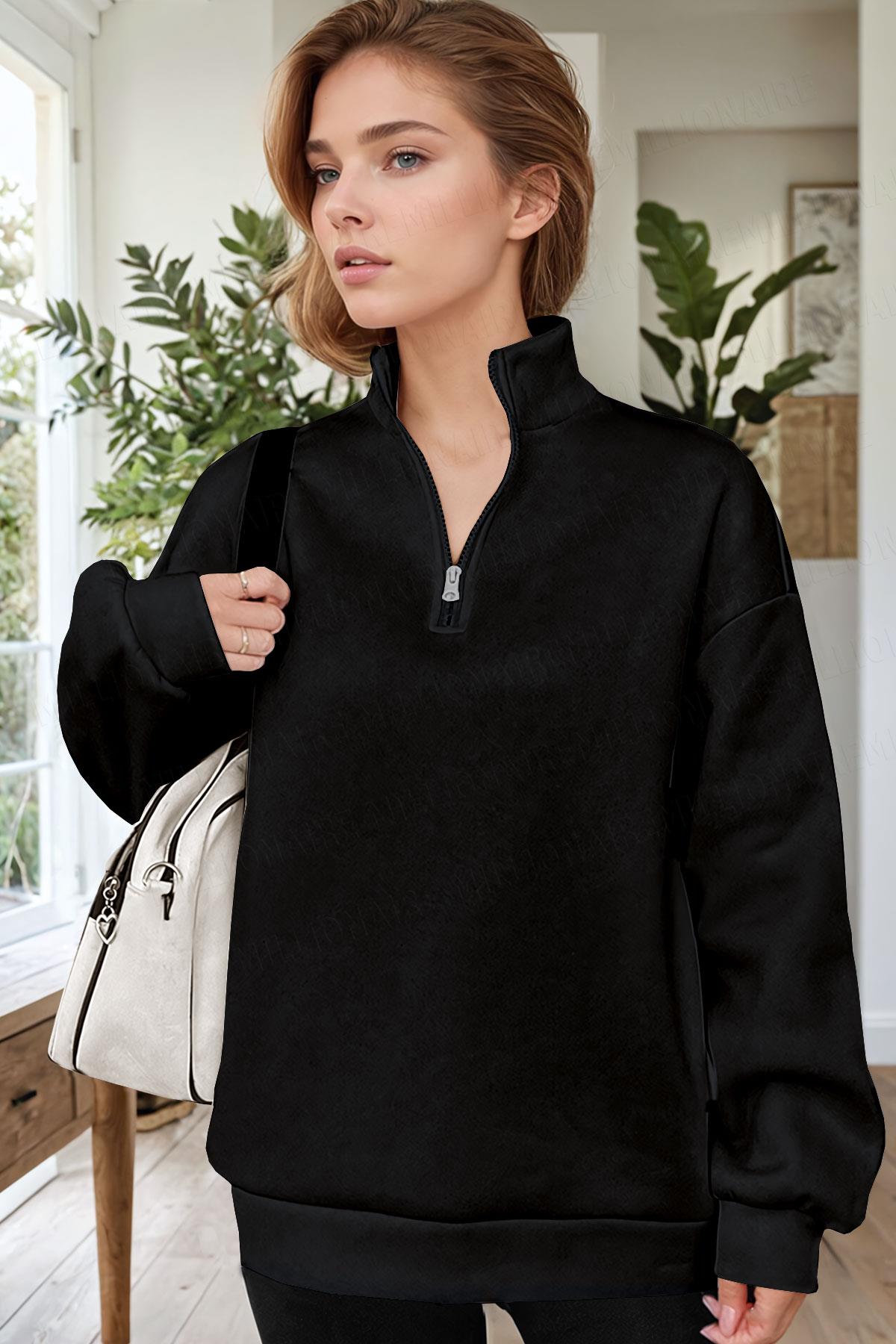 Kadın Siyah Balıkçı Yaka 3 Iplik Içi Polarlı Şardonlu Oversize Sweatshirt (SK3036)