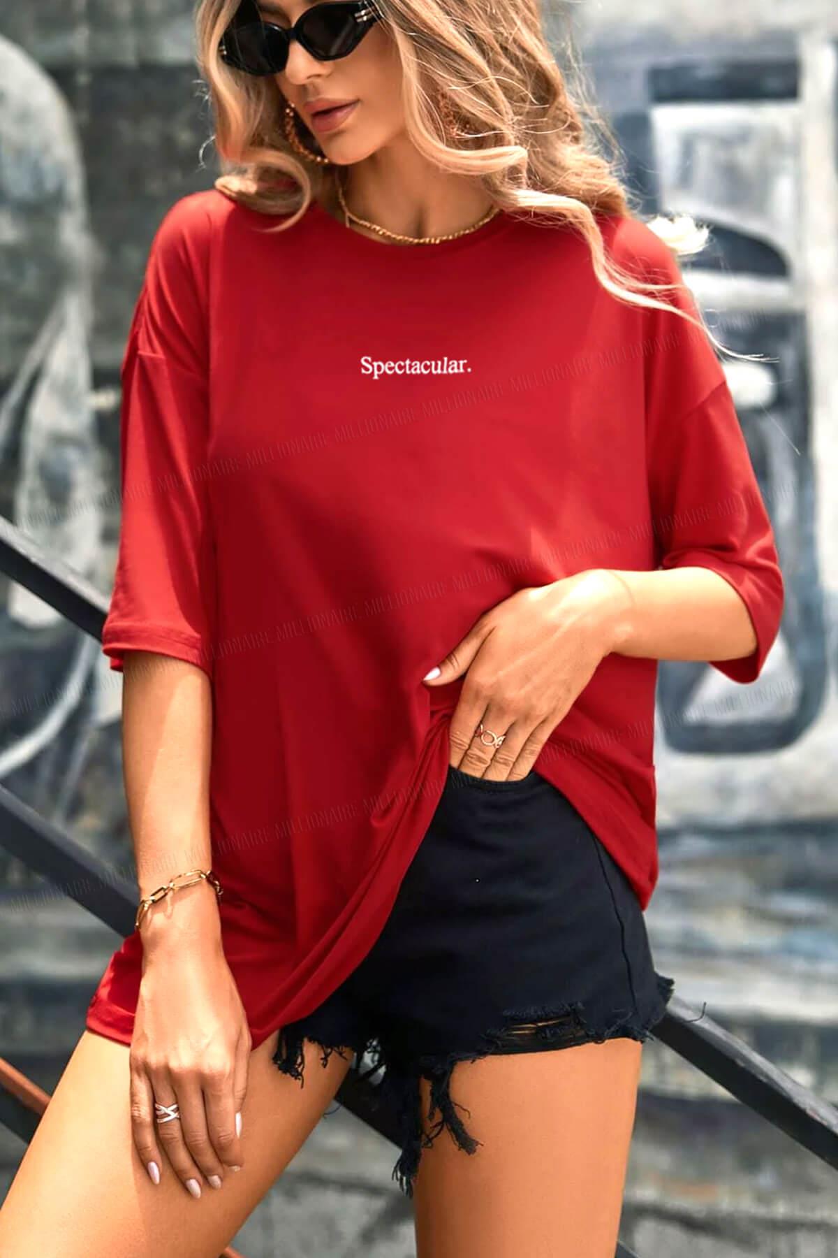 Spectacular Kırmızı Oversize Salas Boyfriend Kadın T-Shirt (K2220)